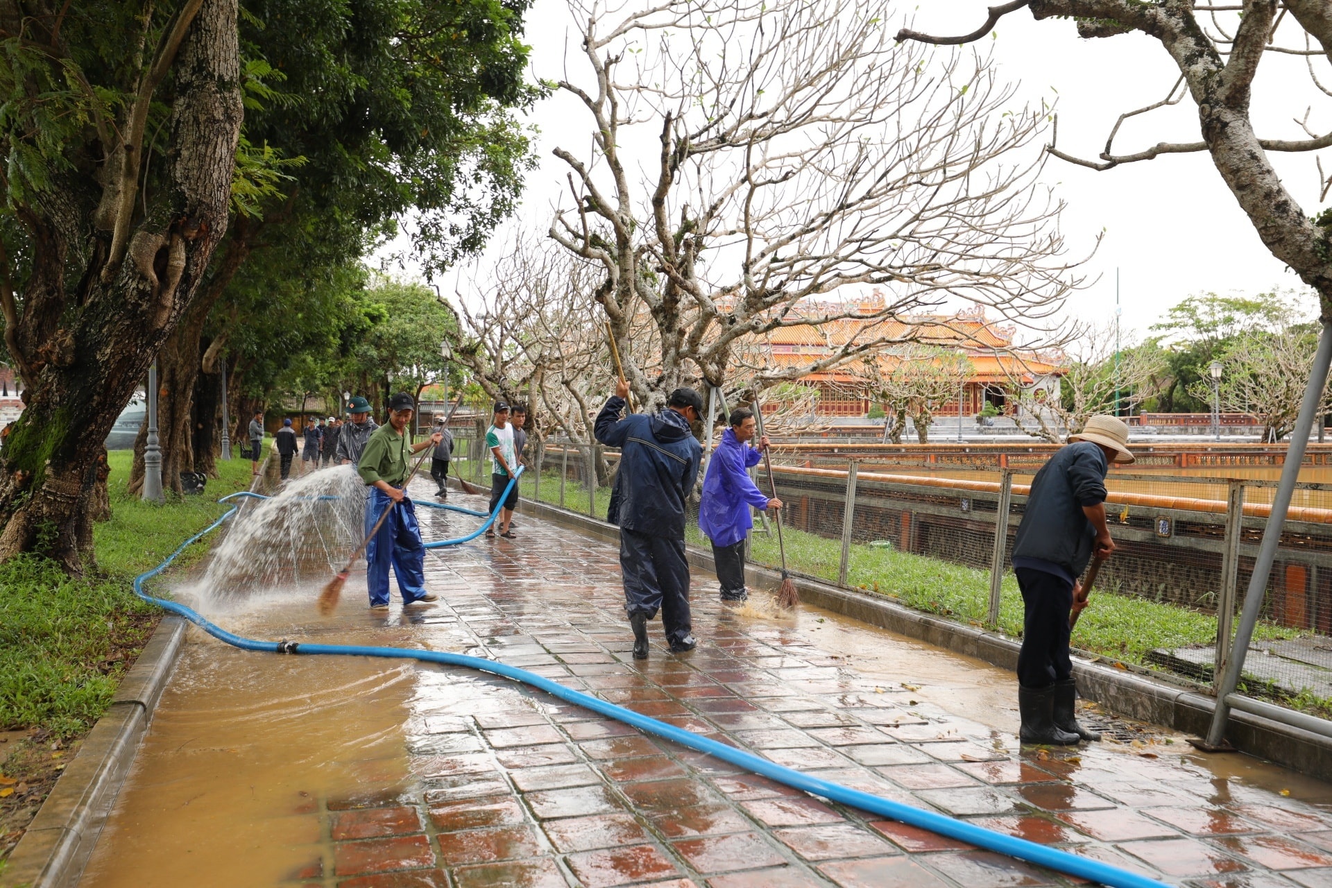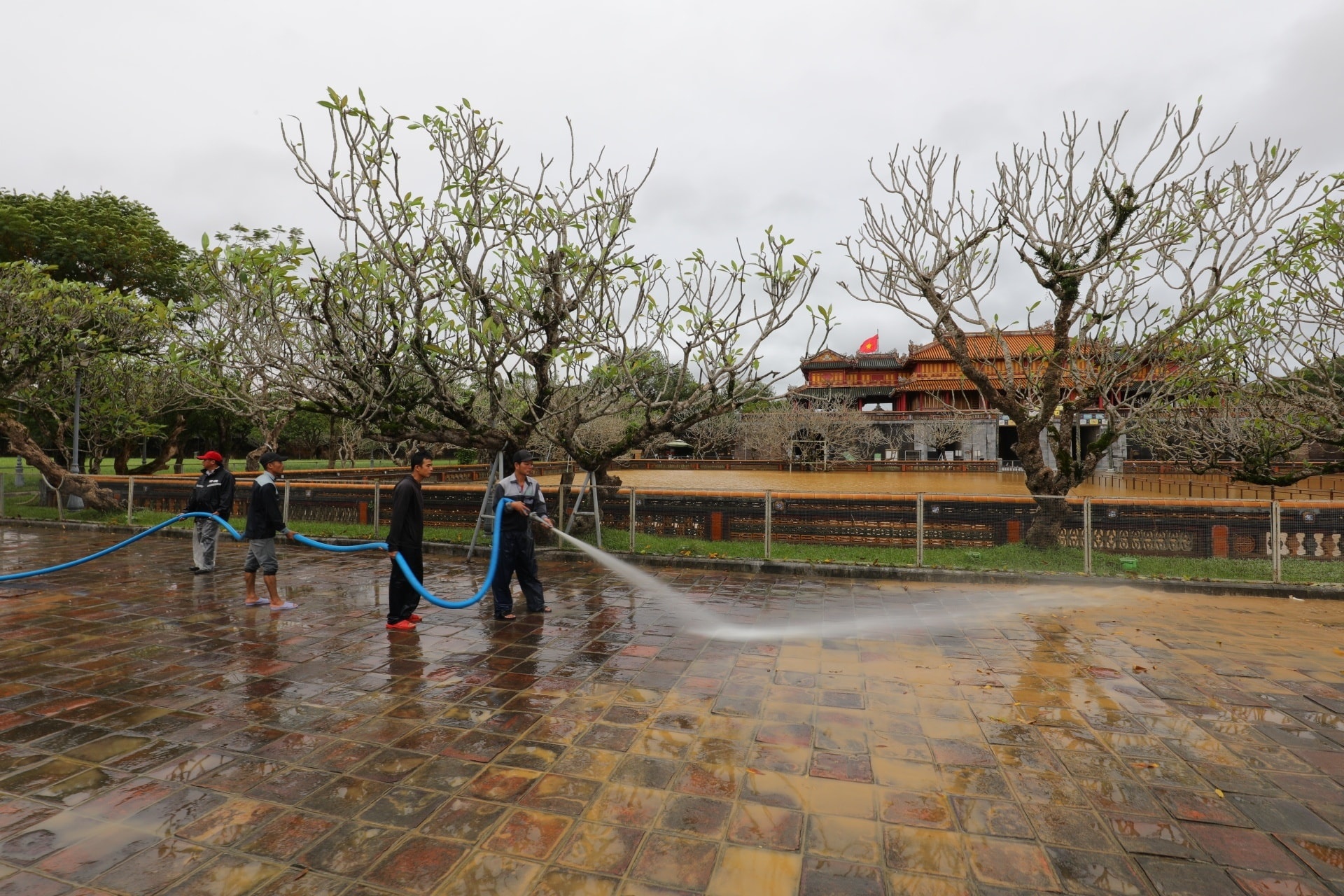 Nhân viên vệ sinh môi trường toàn bộ di tích trước khi đón khách trở lại. Ảnh: TTBTDTCĐH.