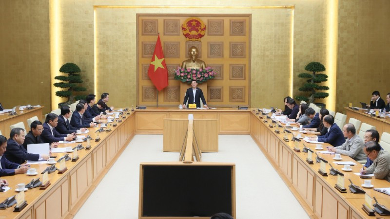 Phó Thủ tướng Chính phủ Hồ Đức Phớc chủ trì cuộc họp về phương án sắp xếp doanh nghiệp kinh doanh xổ số tại Việt Nam. (Ảnh: VGP/TRẦN MẠNH)