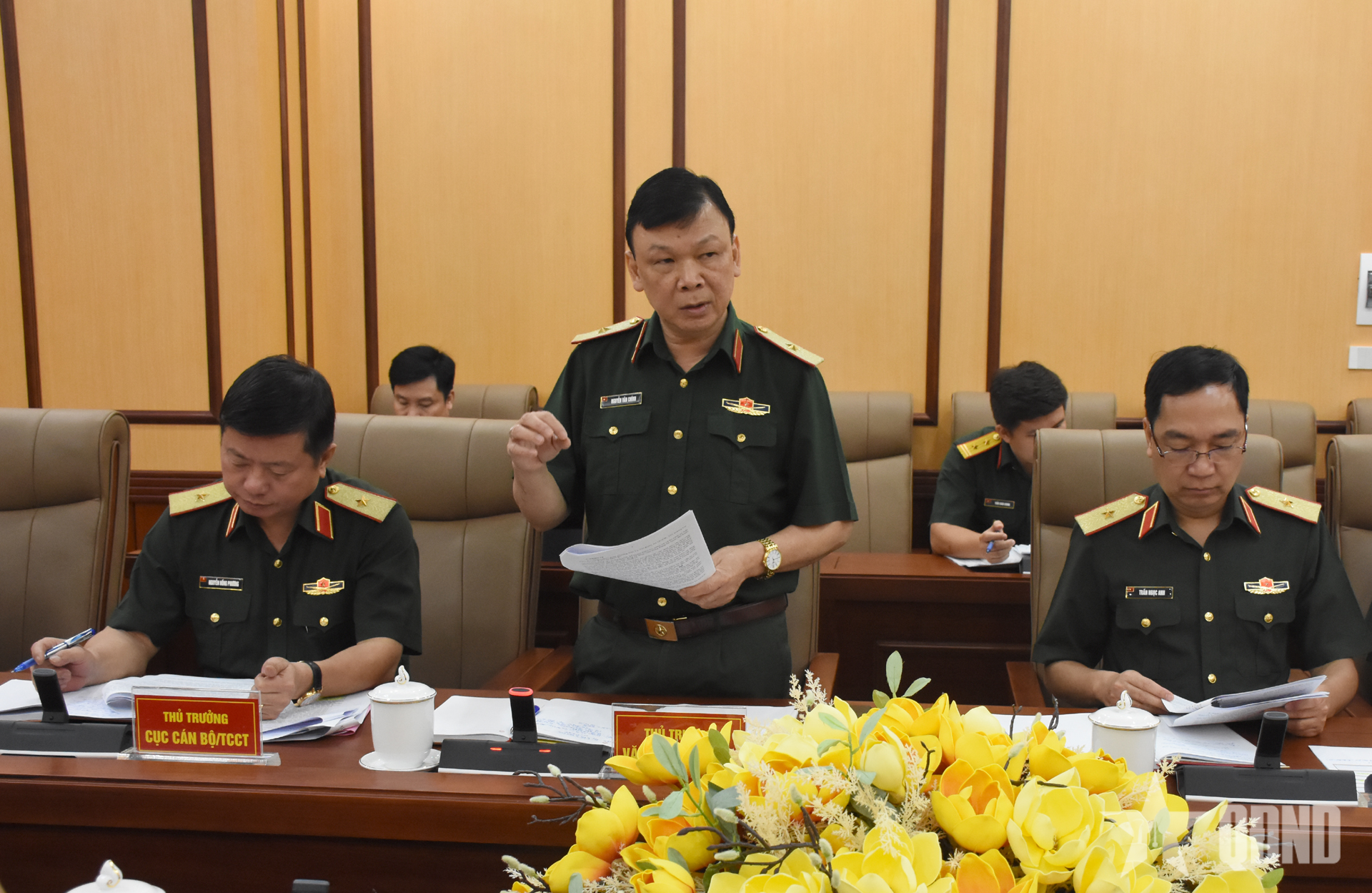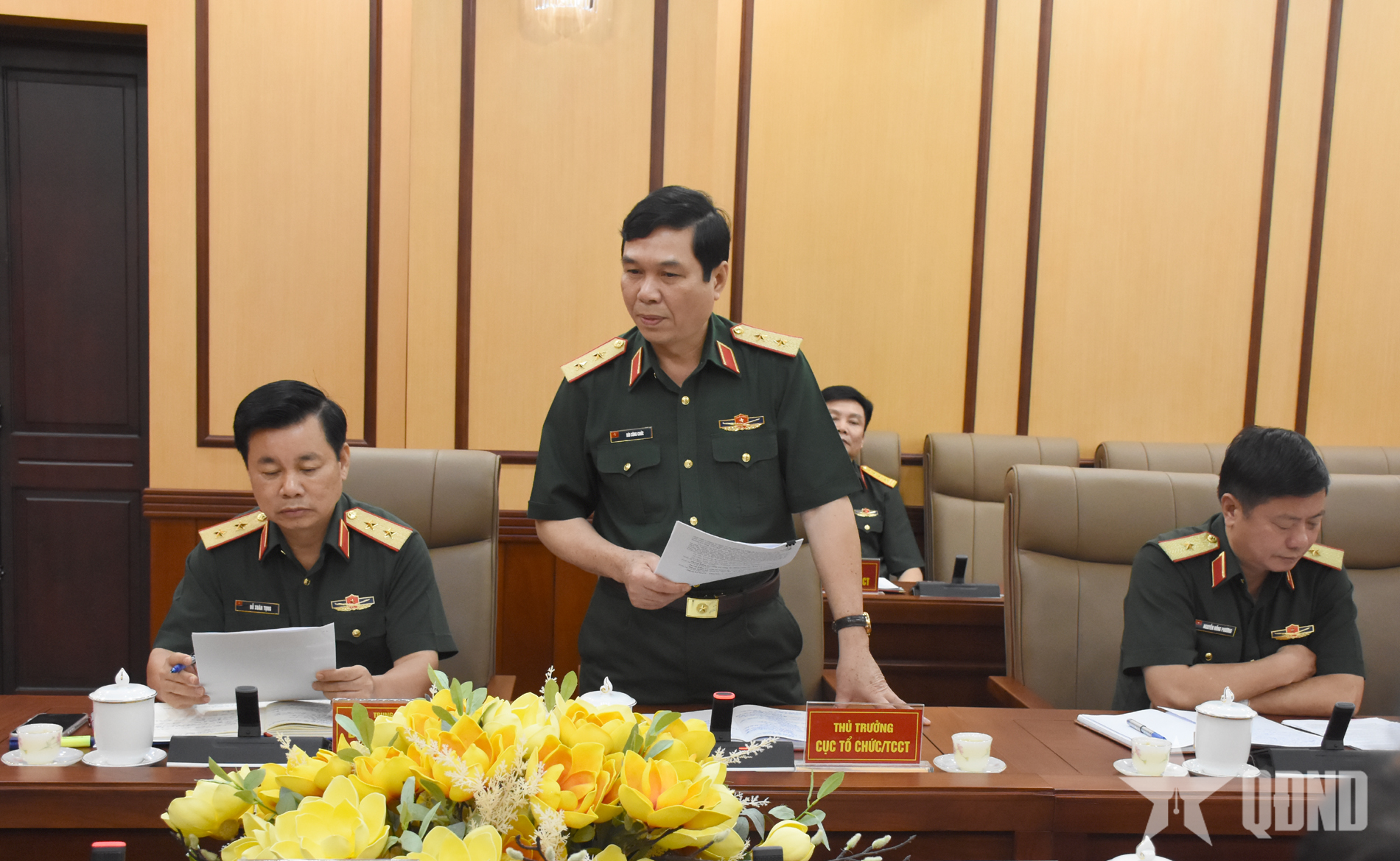 Trung tướng Bùi Công Chức, Cục trưởng Cục Tổ chức (Tổng cục Chính trị) phát biểu tại hội nghị.