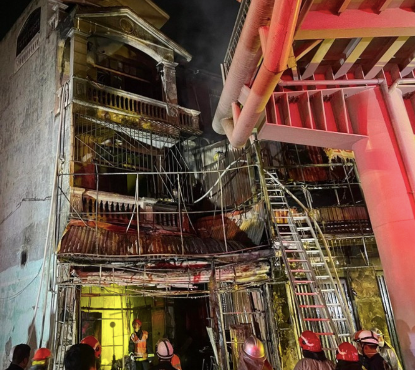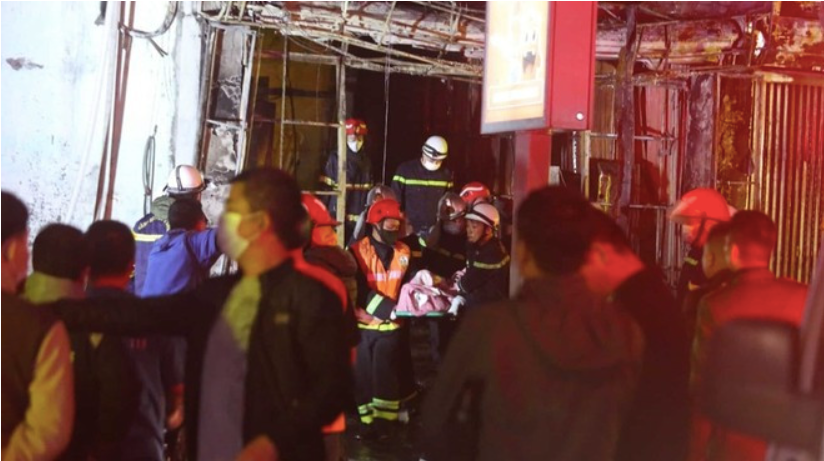 Lực lượng chức năng khống chế đám cháy đưa các thi thể ra ngoài.