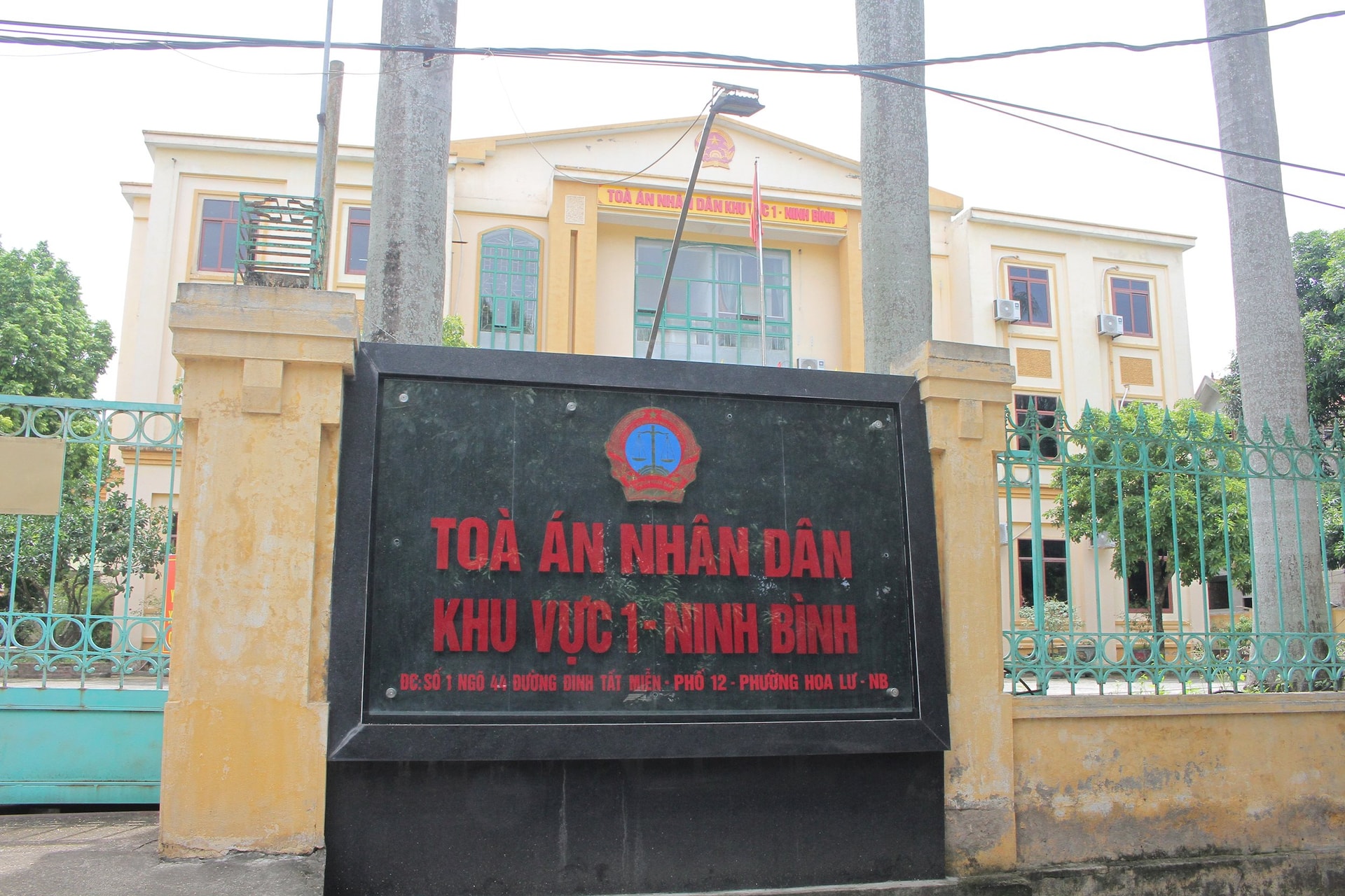 Trụ sở TAND khu vực 1 - Ninh Bình, có địa chỉ tại số 01, ngõ 44, đường Đinh Tất Miễn, phố 12, phường Hoa Lư, tỉnh Ninh Bình.