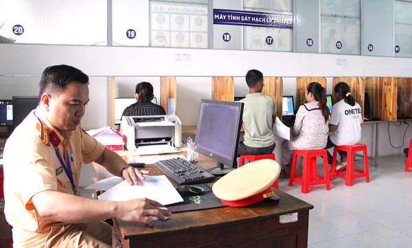 Người dân hoàn tất đăng ký sát hạch giấy phép lái xe.