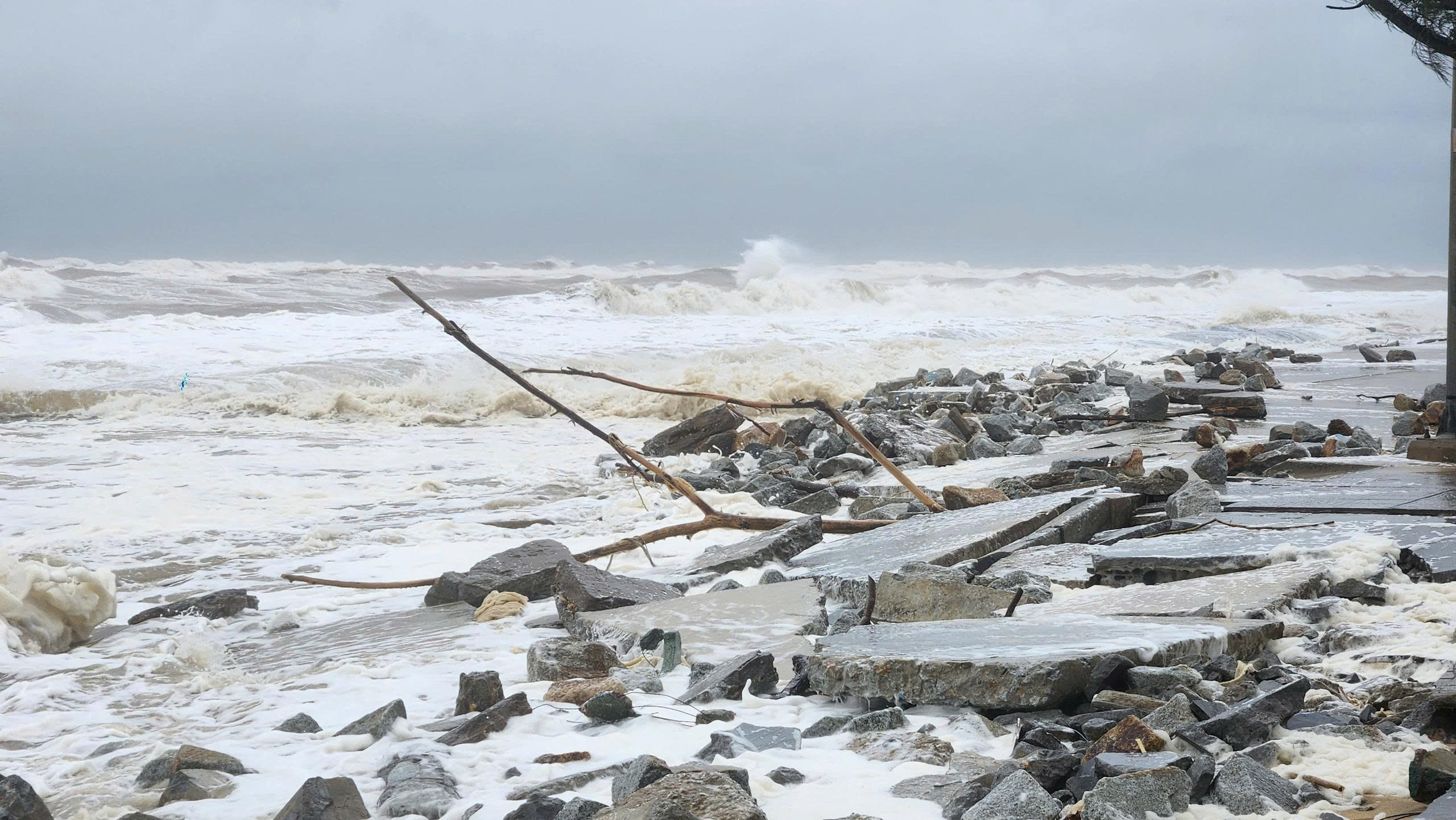 "Nhiều khu vực như thôn Giang Hải, Mỹ Cảnh, Đông Dương, Hàm Rồng và thôn 1 đều ghi nhận tình trạng sạt lở nặng, sóng biển tràn qua đường bê tông, ảnh hưởng trực tiếp đến đời sống và sản xuất của người dân ven biển", ông Dũng nói.