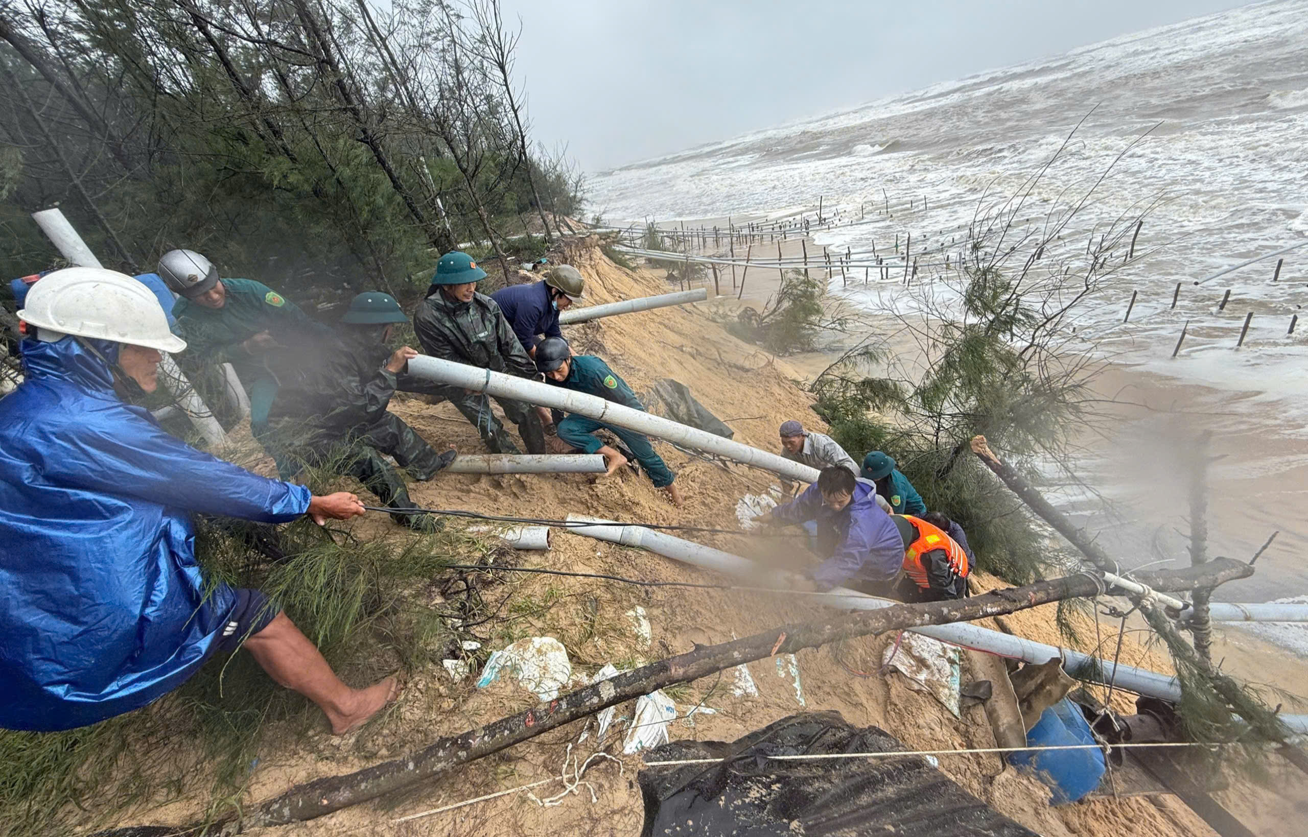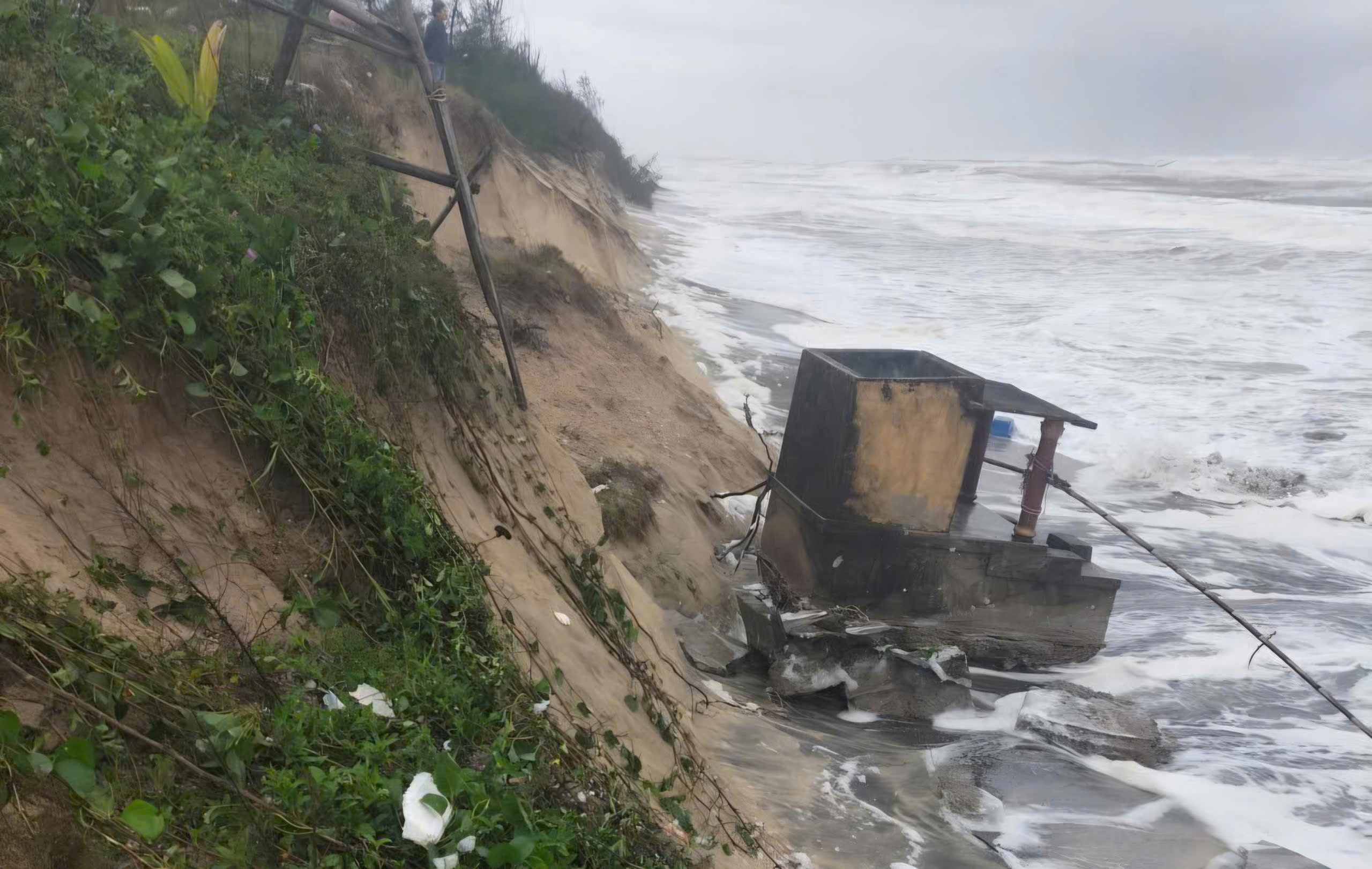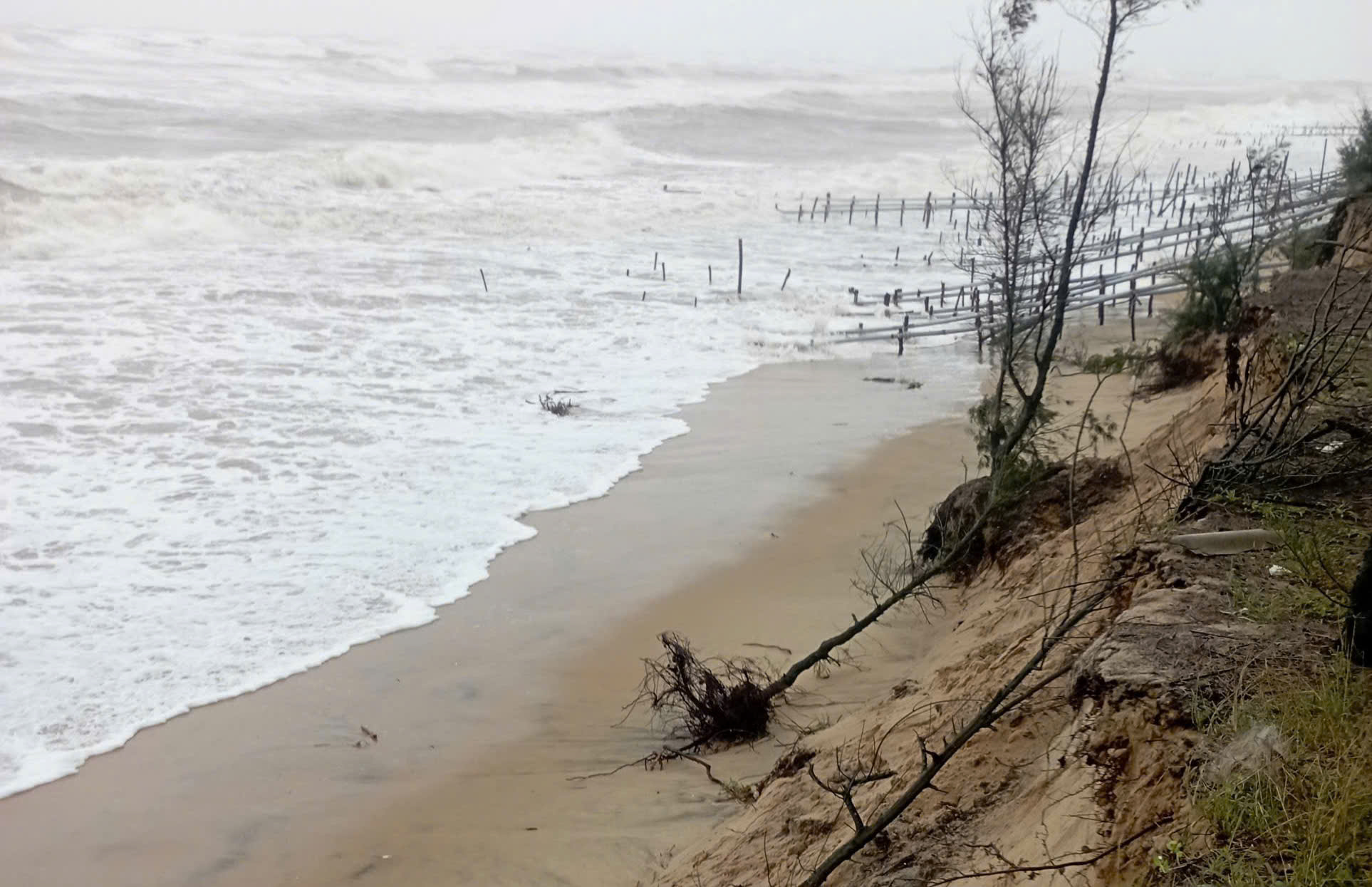 Trong khi đó, ảnh hưởng của các đợt thiên tai vừa qua cũng khiến tình trạng sạt lở bờ biển ở xã Vinh Lộc (TP Huế) tiếp tục diễn biến phức tạp.