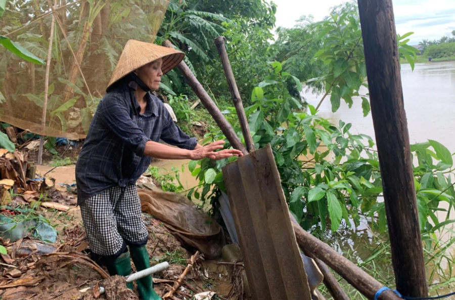 Sạt lở bờ sông lấn sát vào nhà dân tại thôn Niêm Phò, xã Quảng Điền. Ảnh: Lê Hiếu