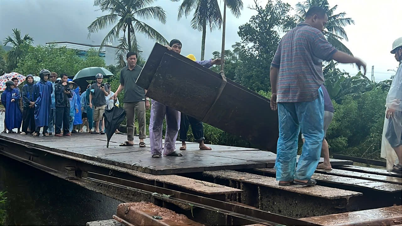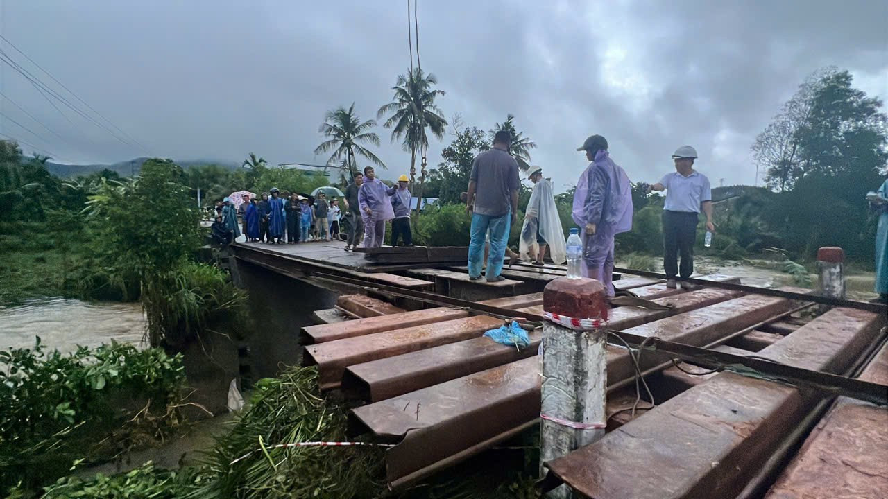 Chiều 2/11, cầu Cây Sung (thôn Phước An, xã Bình Minh, tỉnh Quảng Ngãi) bị sập, trong cùng ngày, lực lượng chức năng đã dựng cầu tạm, khắc phục tình trạng cô lập của 316 hộ/1.280 người dân.