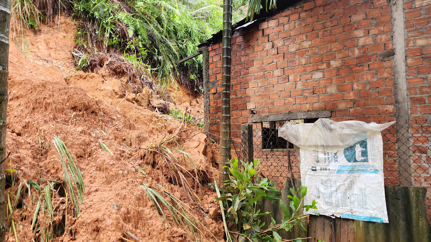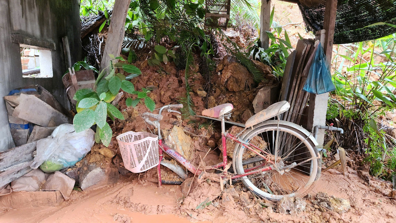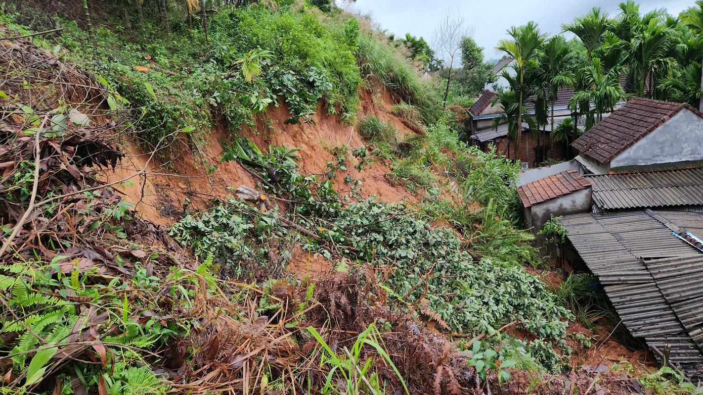 Núi Hòn Dồ đang sạt làm hư hại nhiều nhà cửa người dân.