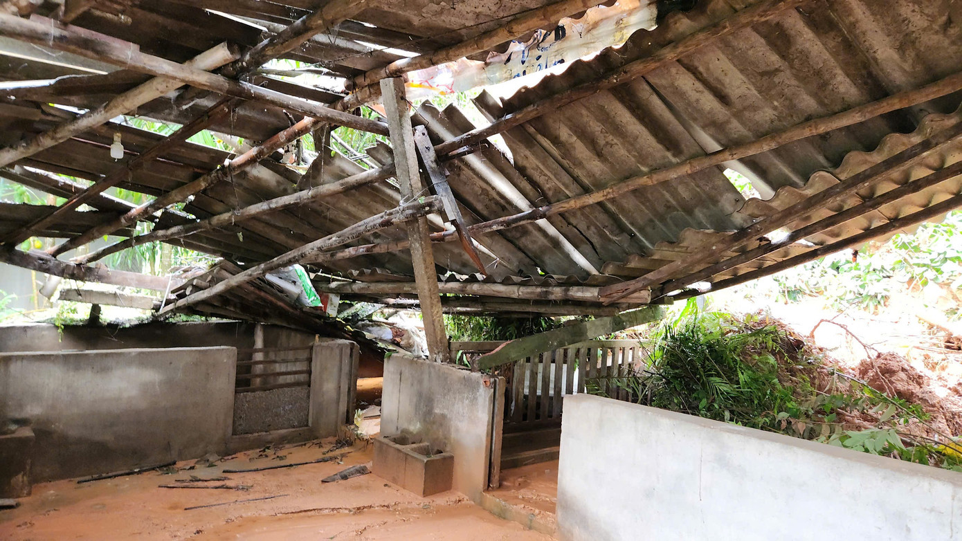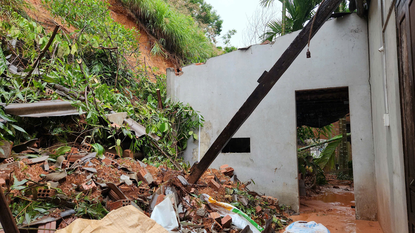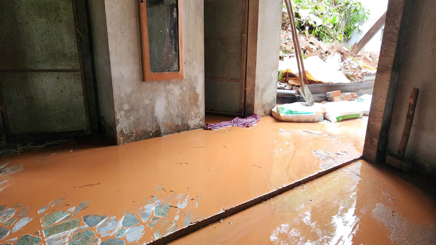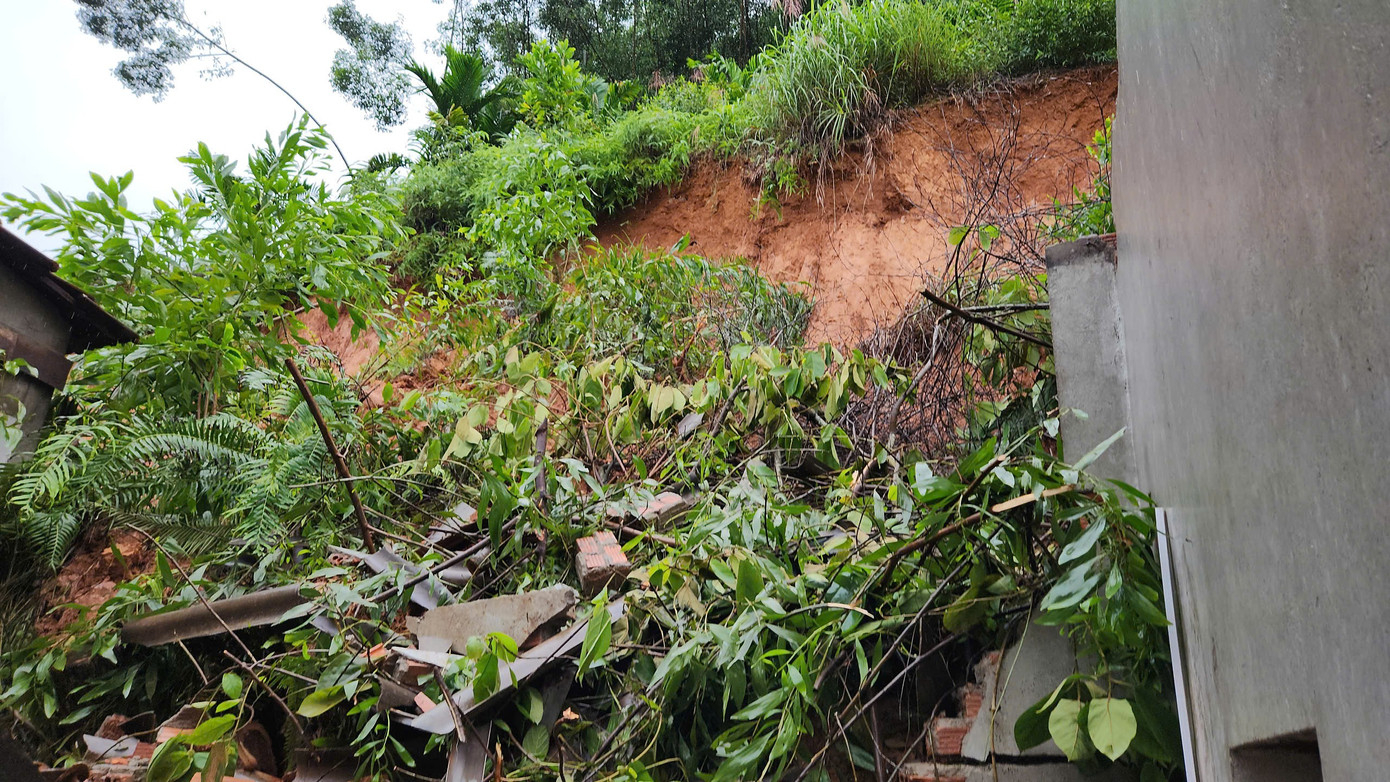 Sạt lở đổ ập xuống nhà người dân dưới chân núi.