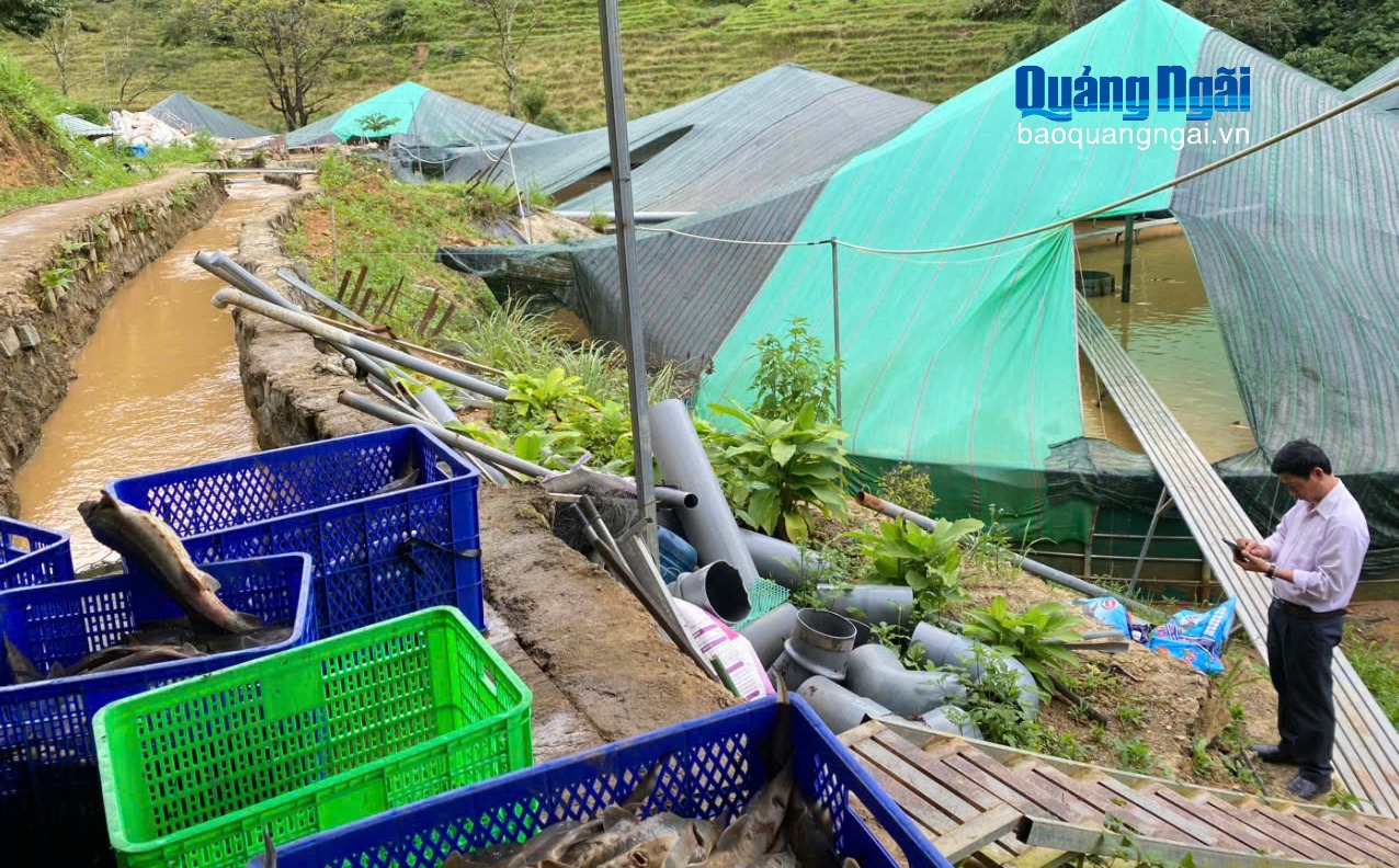 Bí thư Đảng ủy xã Ngọc Linh A Phương cho biết, sáng sớm ngày 31/10, mưa lớn làm quả đồi đầu nguồn ở thôn Lê Ngọc bị sạt lở, cuốn gãy ba trụ điện, nước và đất đỏ tràn xuống suối, sau đó đổ vào khu vực 10 hồ nuôi cá tầm của HTX Thủy sản Ngọc Linh, khiến cá chết hàng loạt.