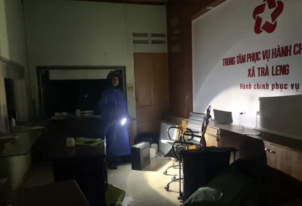 Trên địa bàn xã Trà Leng cúp điện, cán bộ soi đèn pin di dời đồ đạc.