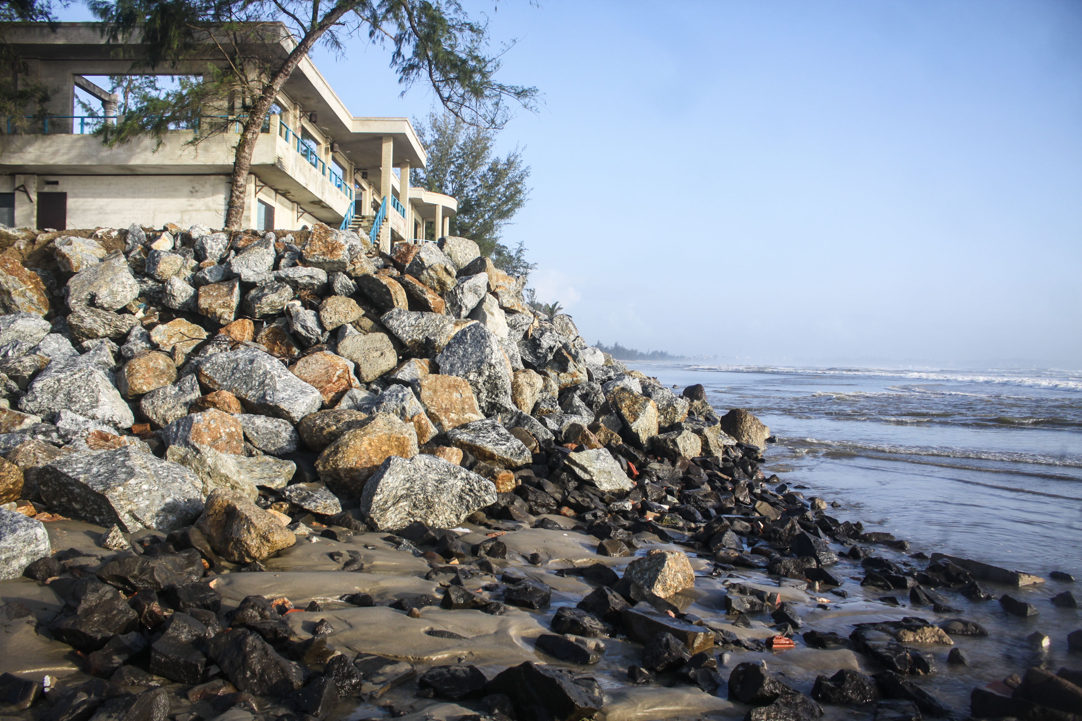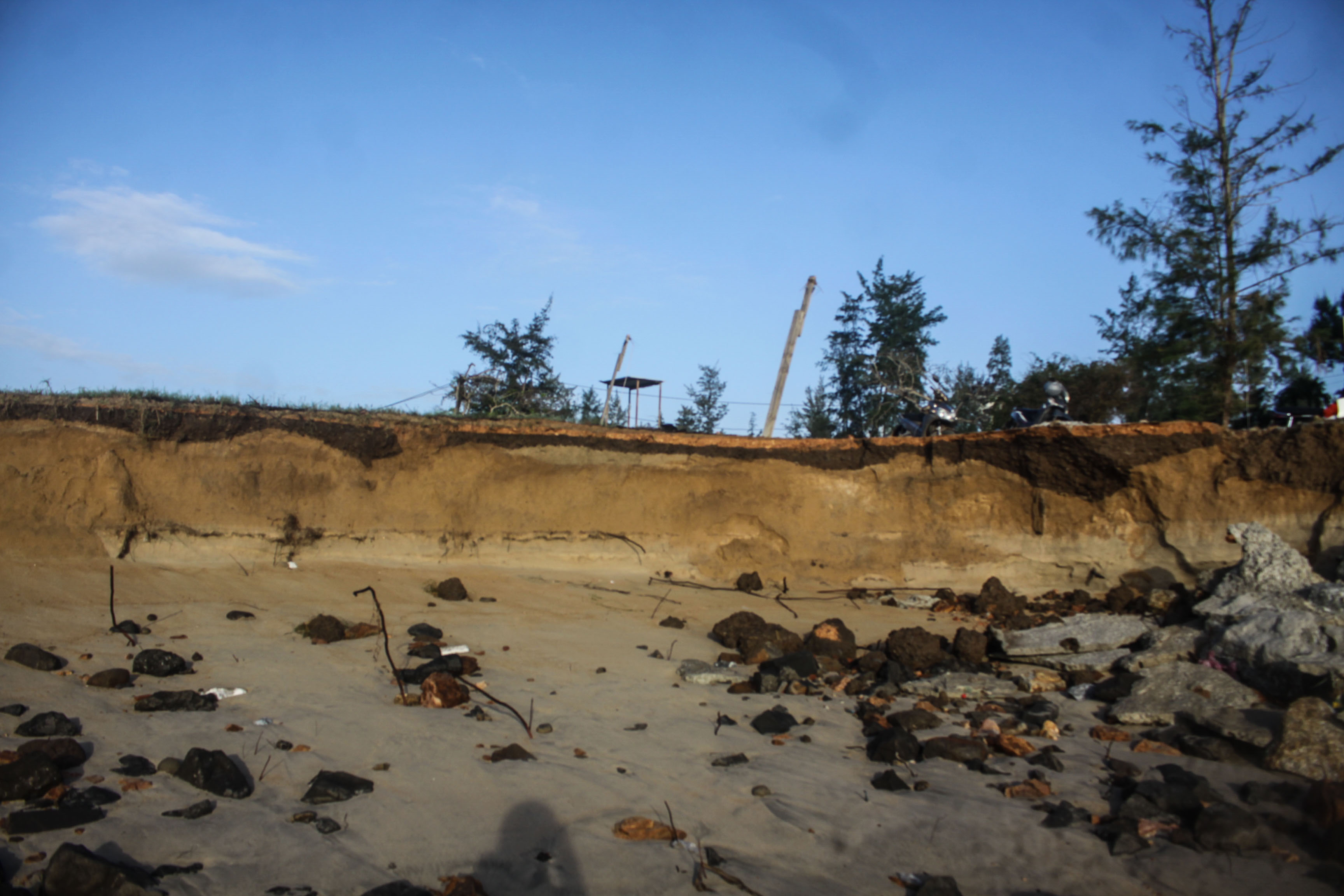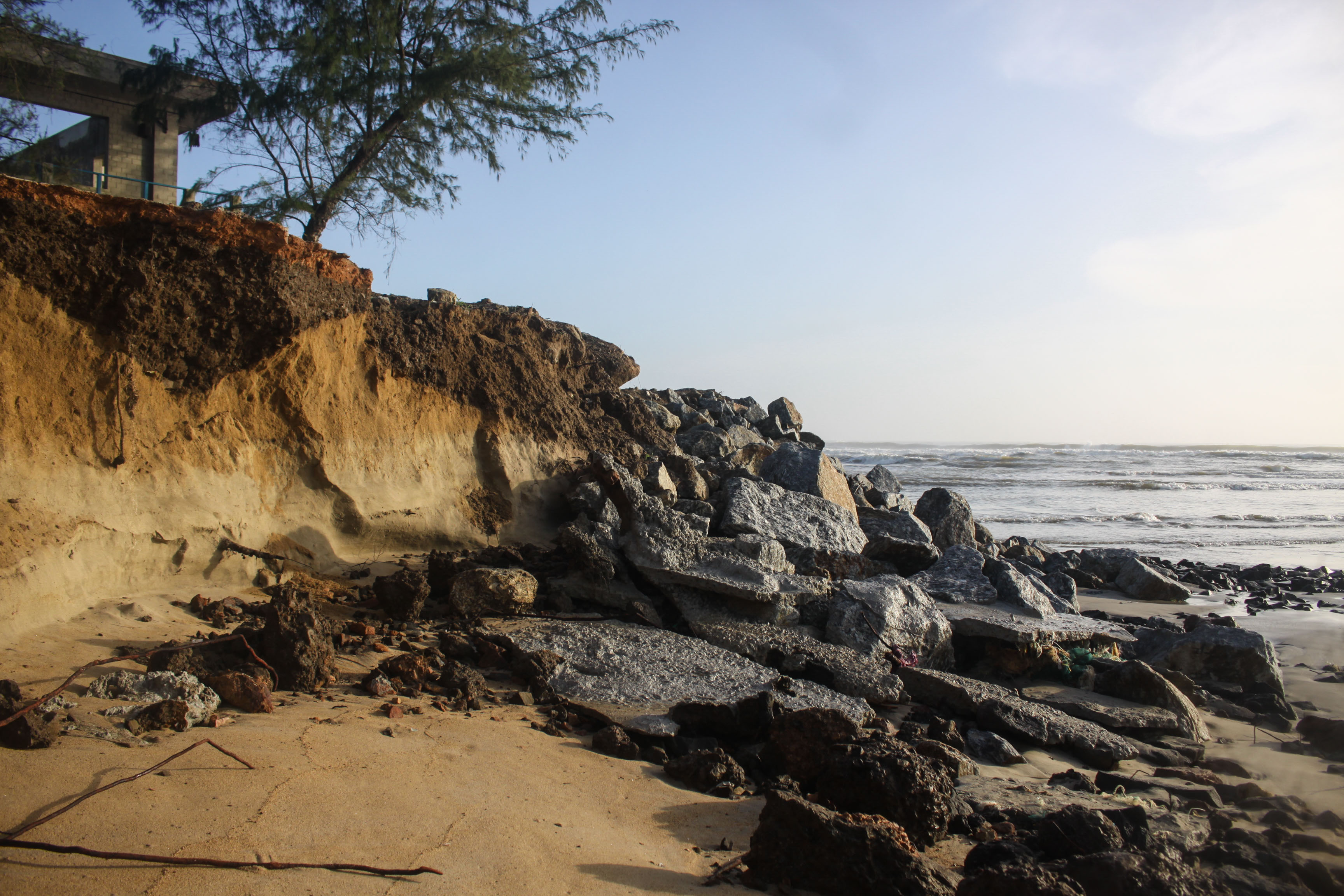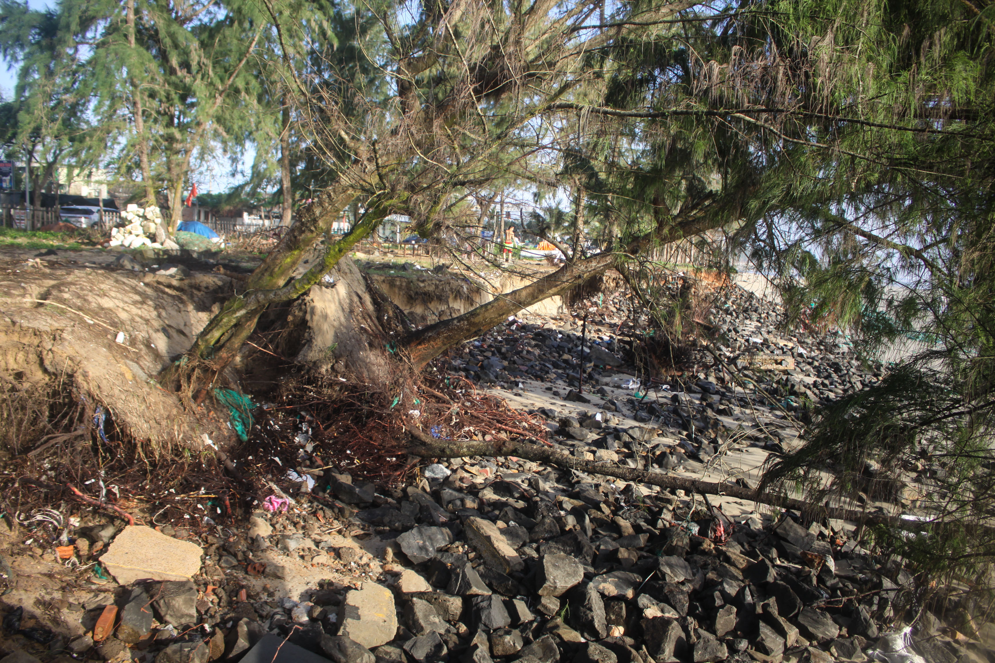 Xâm thực ngày càng nghiêm trọng bãi biển xã Tịnh Khê. Ảnh: NGUYỄN TRANG