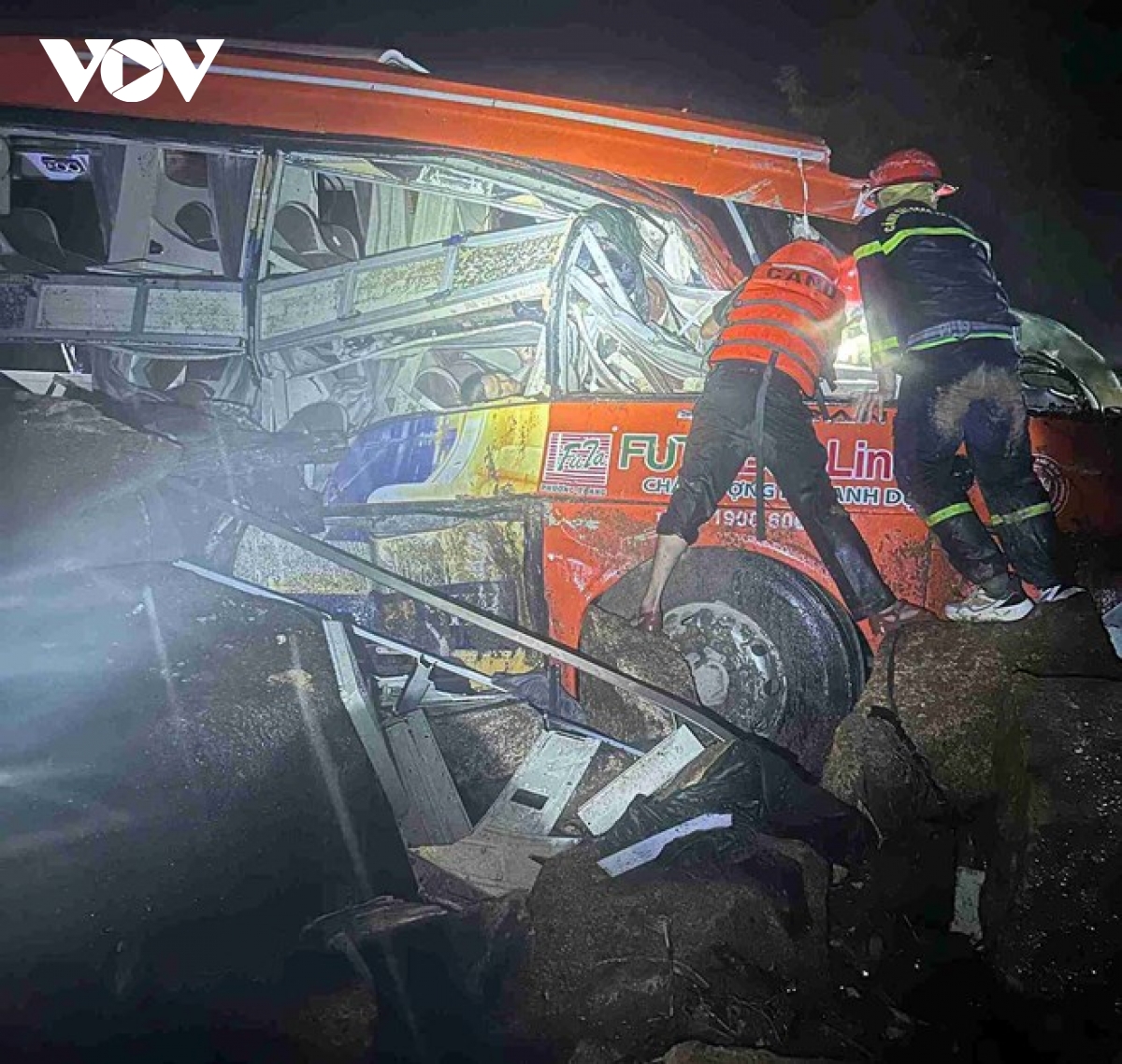 Xe khách bị nạn giữa đêm khuya trên đèo Khánh Lê, tỉnh Khánh Hòa