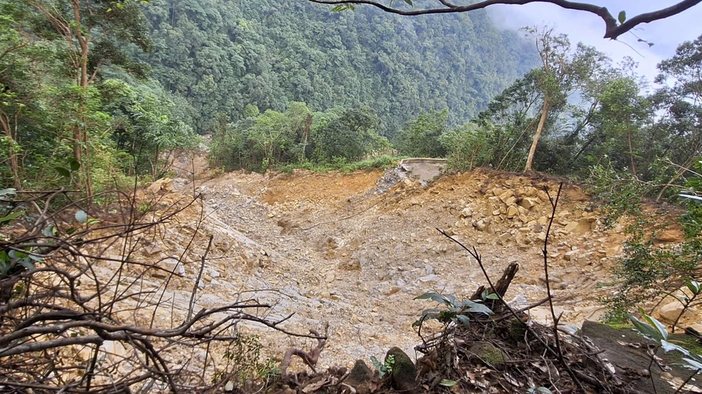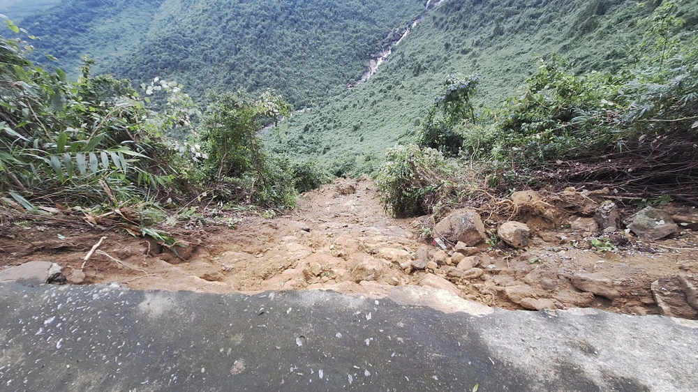 Bên cạnh đó, sạt lở để lại phần mép đường khá chênh vênh, nguy cơ sạt lở lan rộng vào sâu bên trong mặt đường vẫn rất cao. Việc này gây nguy hiểm và chia cắt giao thông trên tuyến đường này.