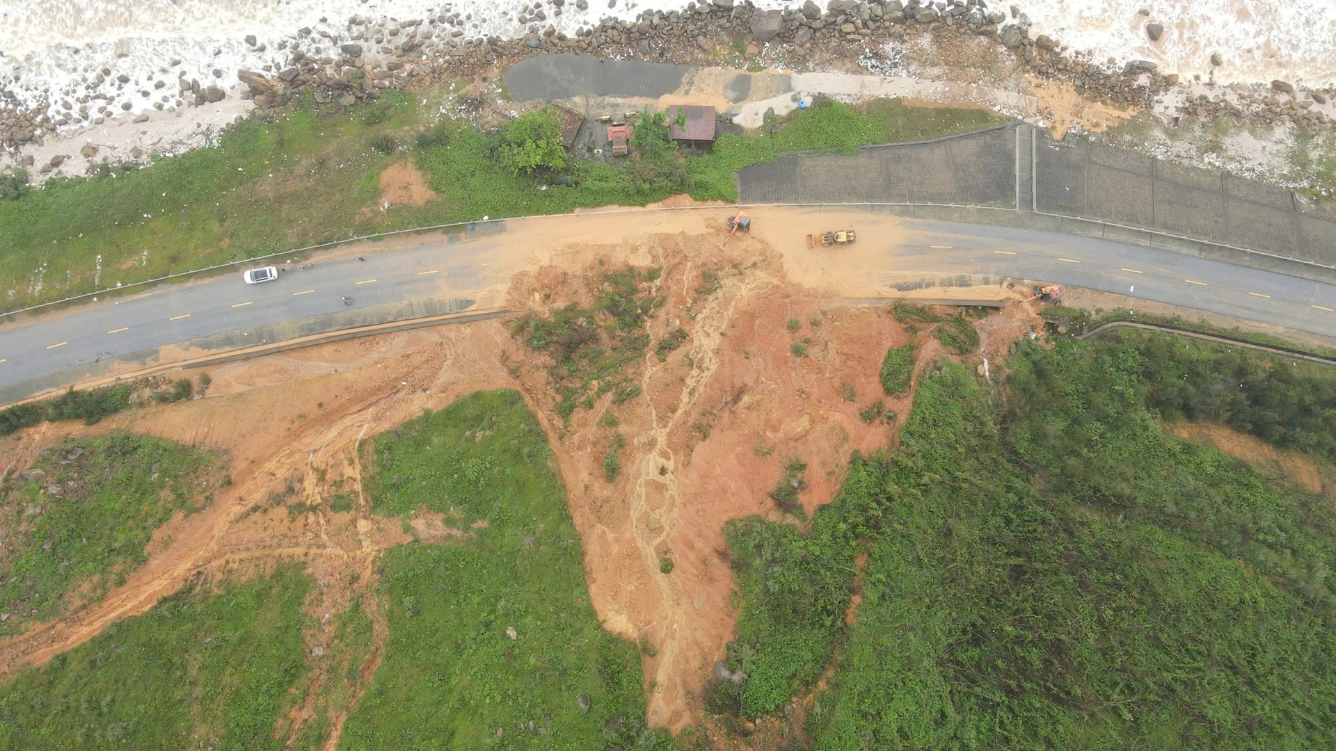 Vị trí sạt lở thuộc địa bàn phường Hải Ninh, đáng lo ngại hơn khi lực lượng chức năng đang phát hiện thêm nhiều vị trí có thể tiếp tục xảy ra sạt lở tại cung đường này.