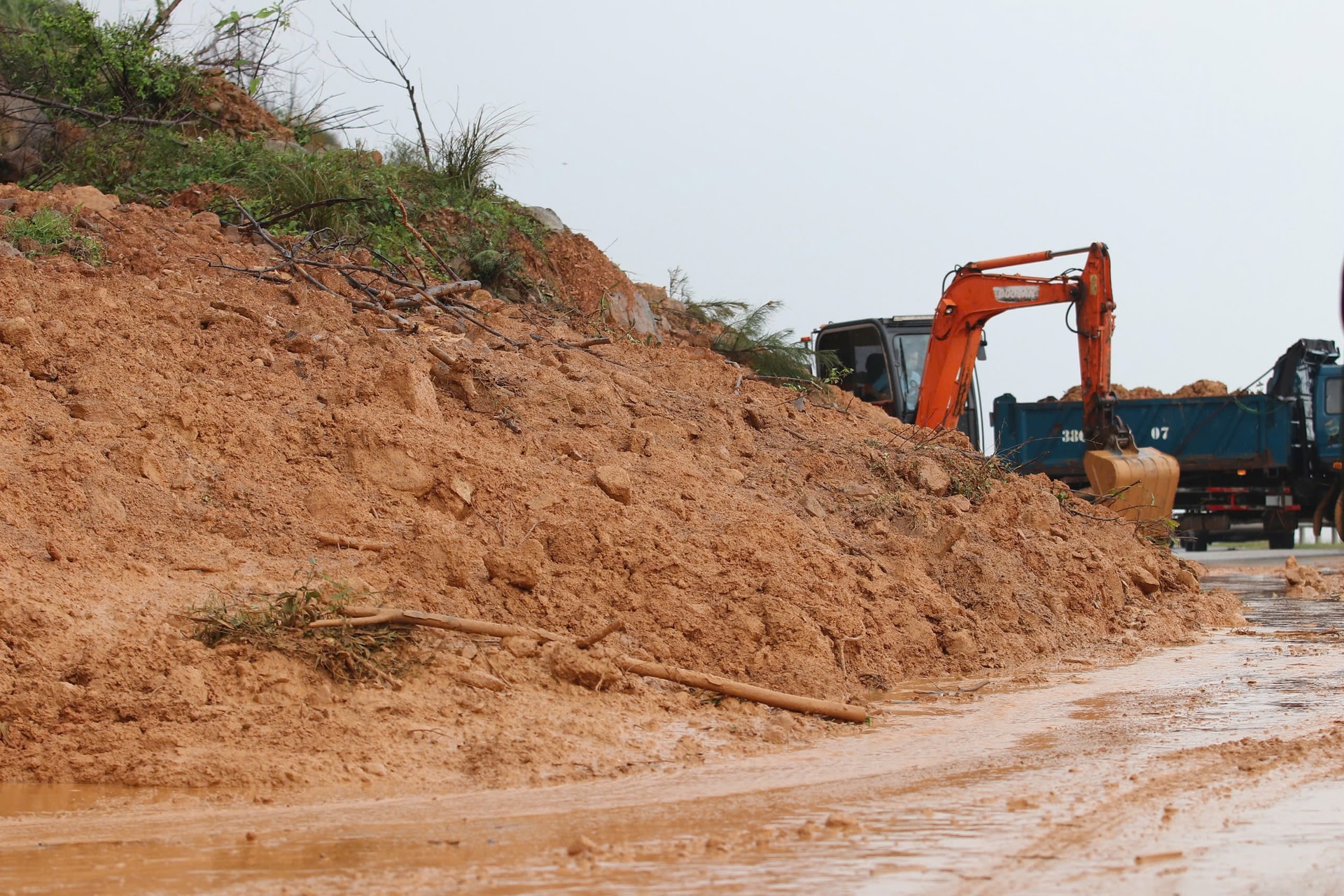 Đơn vị quản lý tuyến đường đã huy động máy móc, nhân lực khắc phục sự cố.