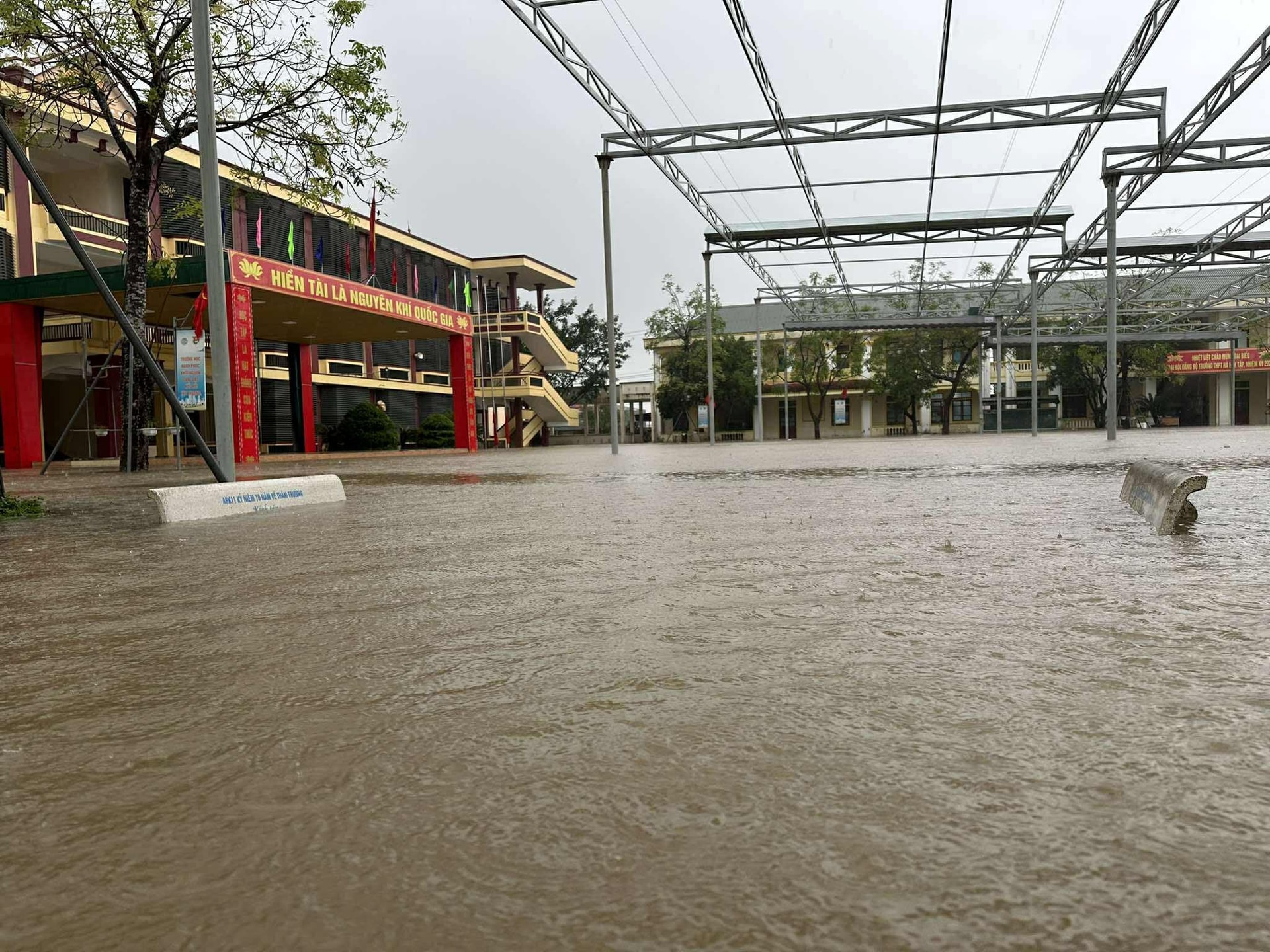 Trường học tại xã Cẩm Xuyên (cũ) cũng bị ngập sâu trong nước.