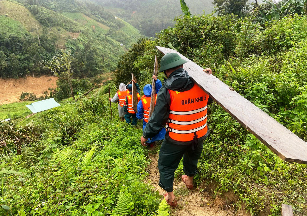 Theo báo cáo của lực lượng chức năng, hàng trăm cán bộ, chiến sĩ thuộc các đơn vị Quân khu 5 đã được điều động đến khu vực xảy ra sạt lở. Lực lượng Công an và dân quân tự vệ địa phương phối hợp hỗ trợ tạo hành lang an toàn và vận chuyển trang thiết bị.