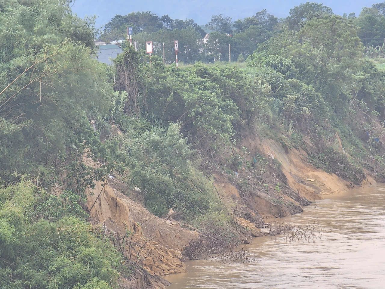 Còn tại thôn 3 chiều dài đoạn bờ sông bị sạt lỡ khoảng 200m, phần sạt lỡ từ mép sông vào đất của các hộ hiện tại trung bình khoảng 20 m, có nguy cơ ảnh hưởng đến khoảng 25 hộ/100 nhân khẩu.