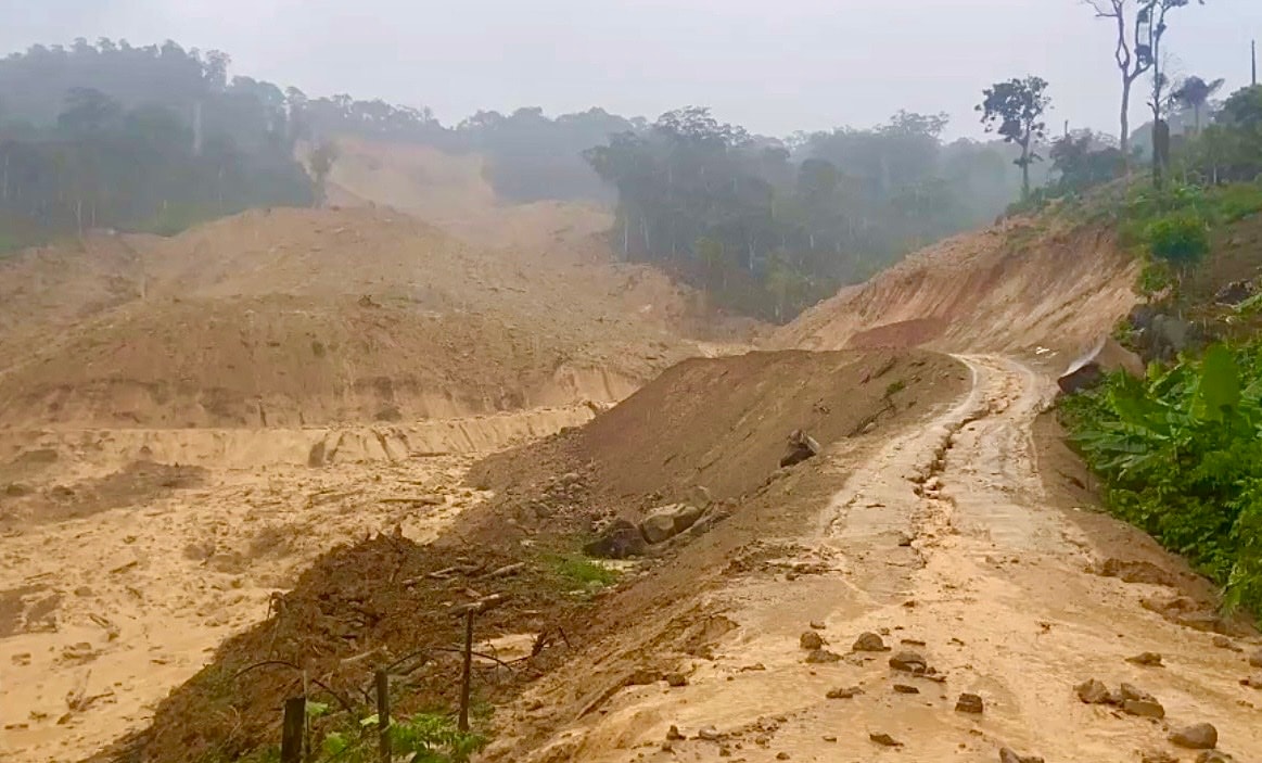 Hiện trường sạt lở đất chiều 25/4 chia cắt tuyến đường huyết mạch khu vực biên giới Hùng Sơn. Ảnh: CTV
