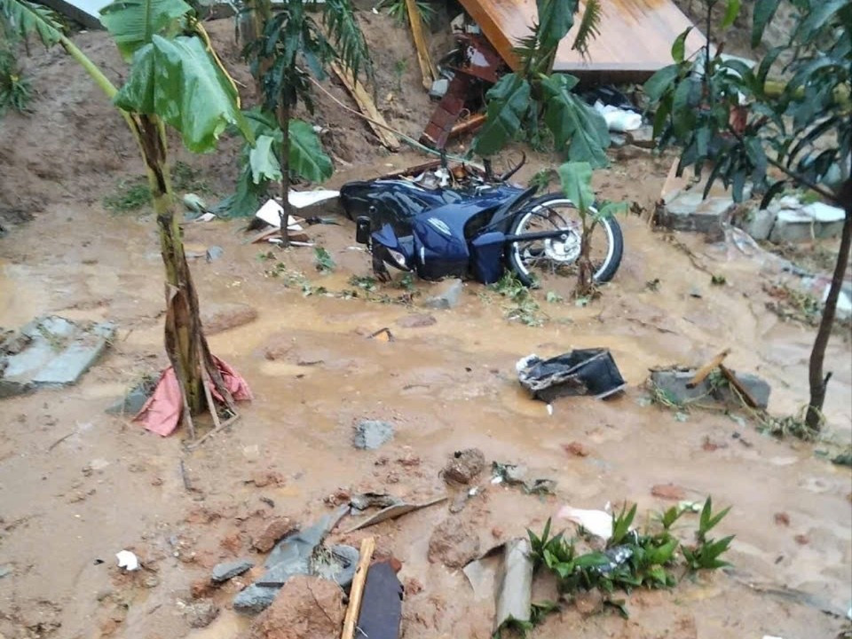 Hiện trường vụ sạt lở vùi lấp nhà, trang trại của người dân.