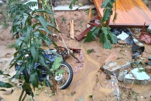 Theo đó, một khối lượng rất lớn đất đá từ trên núi cao đổ sập xuống khu vực trang trại của người dân, làm sập công trình mái che, gây hư hỏng xe ô tô bán tải cùng một số tài sản khác.