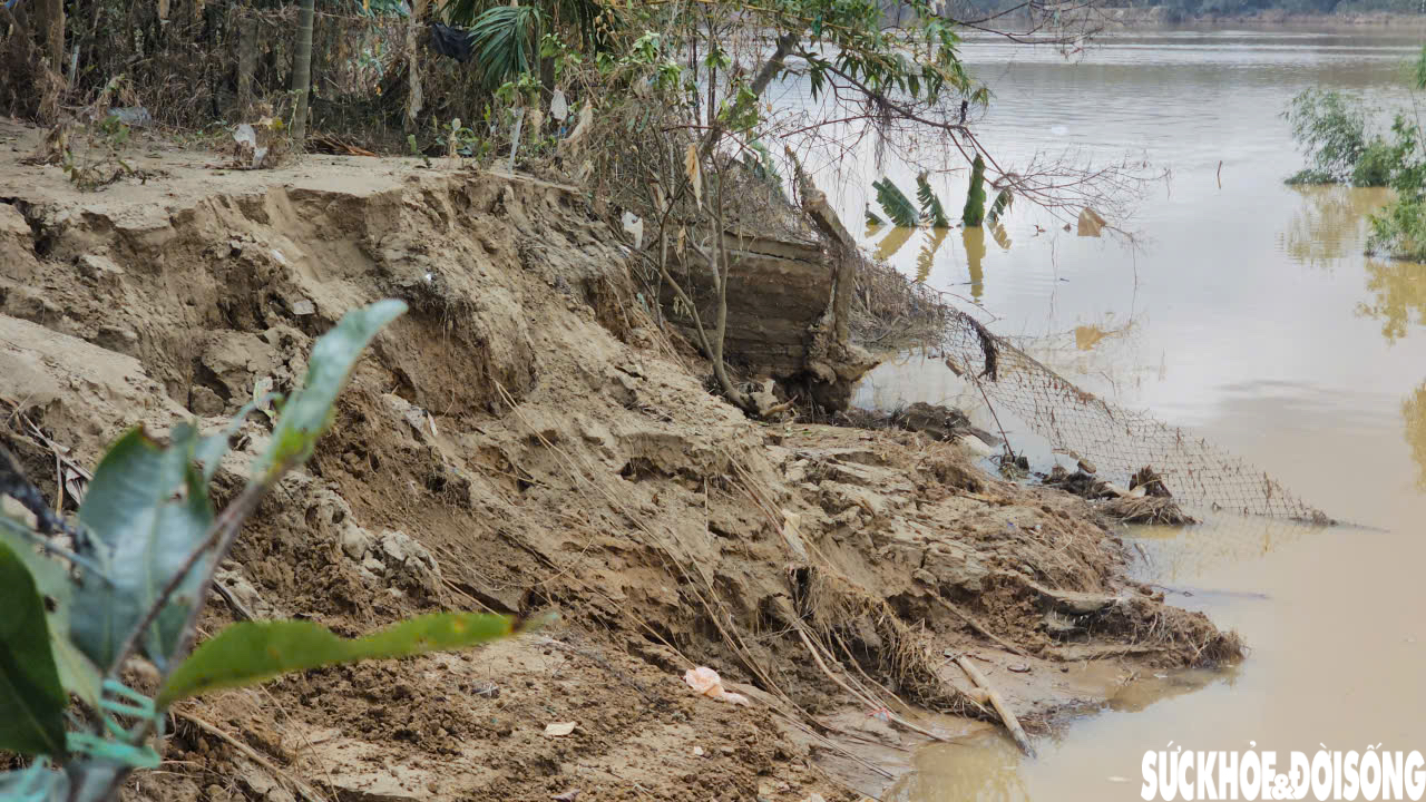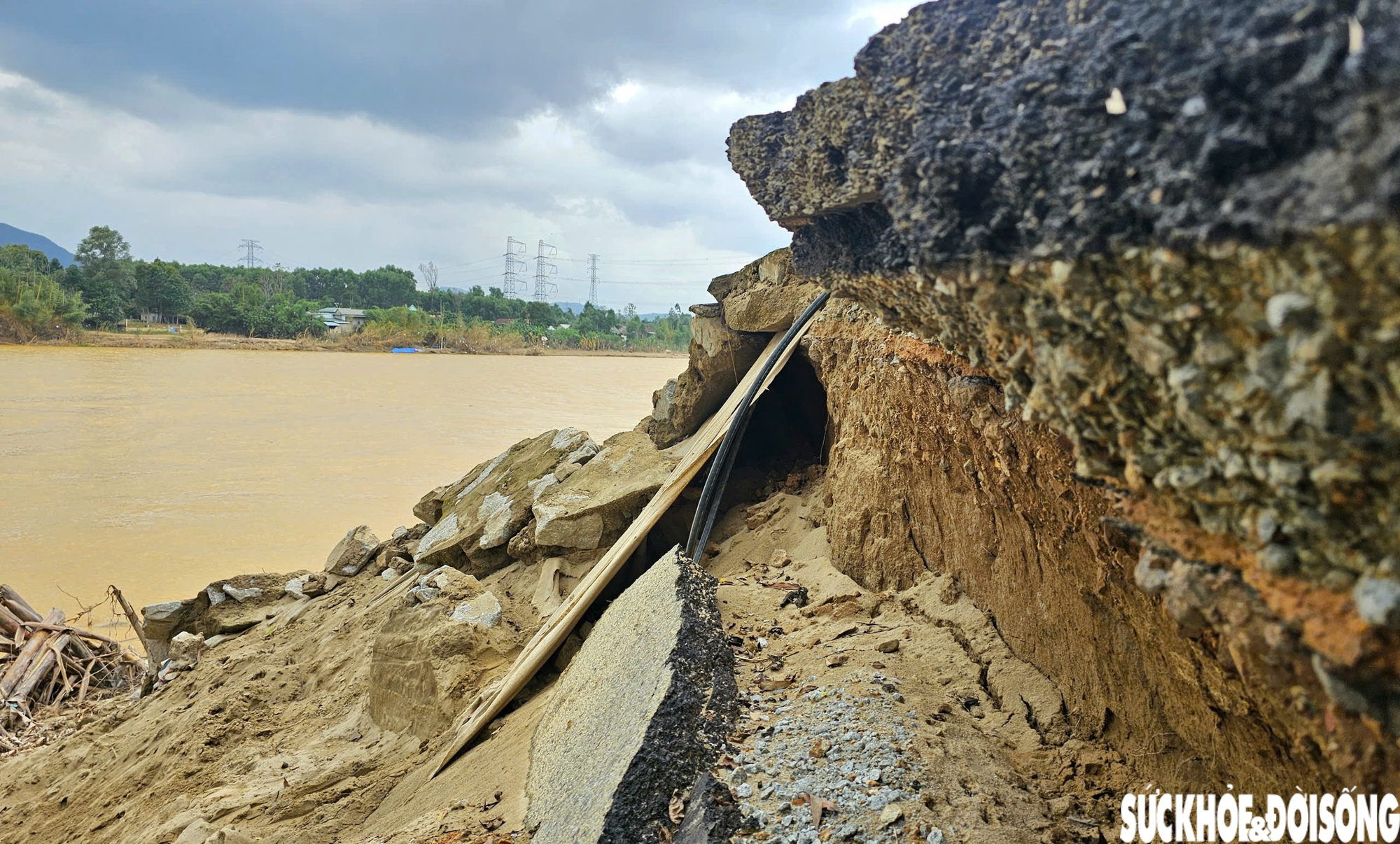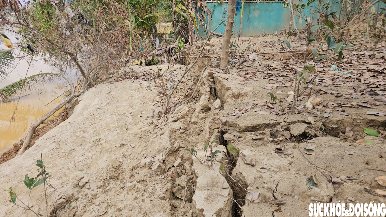 Một số vị trí bị xé toạc, hình thành các hàm ếch lớn, chỉ cần thêm mưa lớn hoặc nước sông dâng cao là có thể tiếp tục sạt lở.