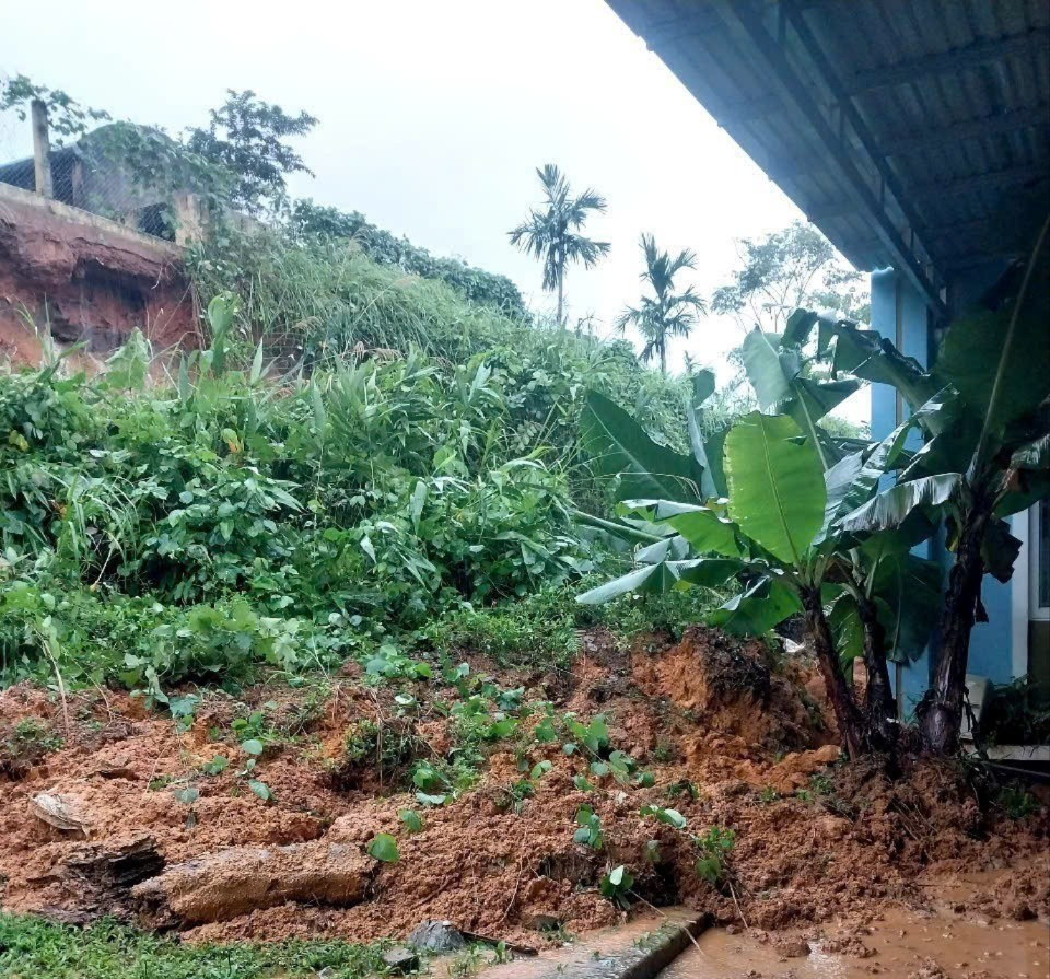 Khối đất đá khổng lồ tràn xuống, gây nguy hiểm nghiêm trọng, đe dọa an toàn khu nhà, buộc nhà trường phải ngừng sử dụng toàn bộ khu nhà.