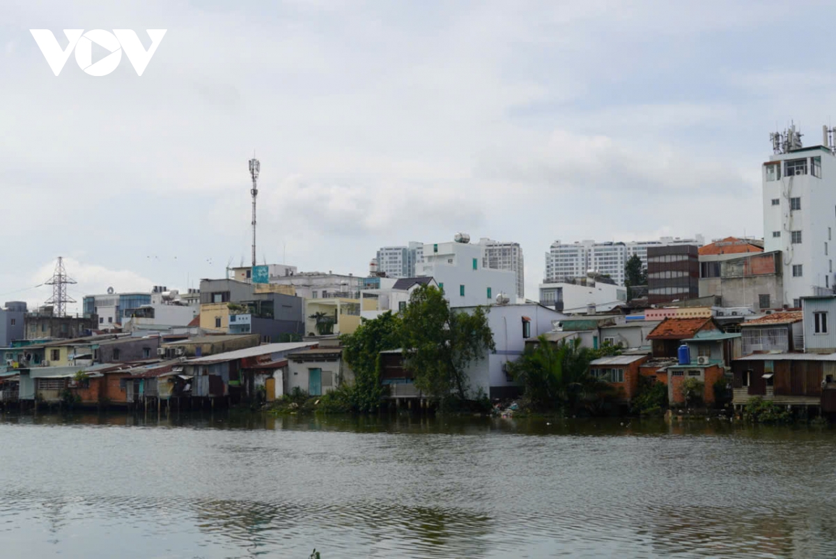 Khu vực bờ nam kênh Đôi còn nhiều nhà ven kênh chưa được giải tỏa ẩn chứa nhiều nguy hiểm (Ảnh: Hoàng Minh)