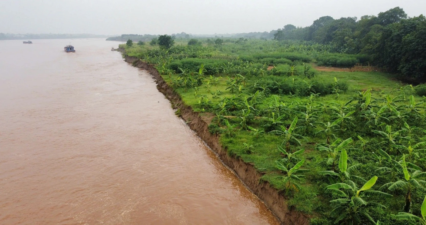 Một điểm sạt lở xảy ra bờ sông Thao qua Phú Thọ.