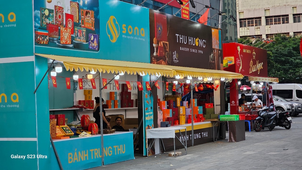 Dạo quanh các tuyến đường như Lê Văn Lương, Hoàng Đạo Thúy, Kim Mã, Giảng Võ, Võ Chí Công,… hàng loạt quầy bánh Trung thu của các thương hiệu lớn như Kinh Đô, Hữu Nghị, Đồng Khánh, Thu Hương,… được dựng lên từ đầu tháng 7 âm lịch. Sát ngày rằm, người mua rất ít.