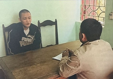 Cán bộ Ban chuyên án lấy lời khai đối tượng Dũng “ộp” (trái) - một mắt xích quan trọng trong đường dây của Nguyễn Thị Bích Ngọc.