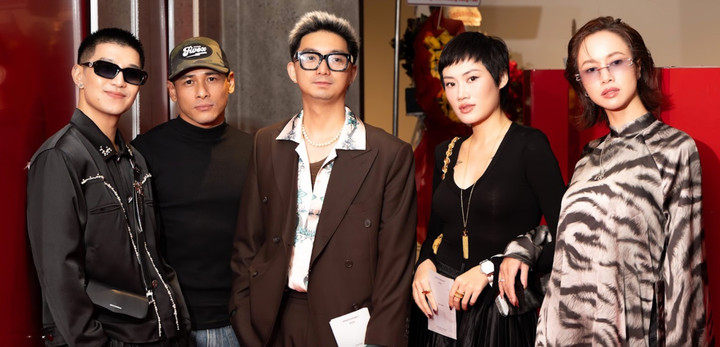Bên cạnh cặp vợ chồng Vũ Ngọc Anh và Cường Seven, sự kiện còn có sự xuất hiện của một số nghệ sĩ. Ca sĩ Hoàng Tôn kết hợp quần phom rộng trắng, phối cùng sơ mi tay dài lụa in họa tiết kiến trúc. Rapper Osad trẻ trung song vẫn đầy phóng khoáng với jeans rách phối cùng polo shirt lụa. Trong khi đó, Rapper RTee xuất hiện với phong cách bụi bặm quen thuộc với quần họa tiết cùng hoodie cá tính, hoàn thiện tổng thể với kính râm cá tính.