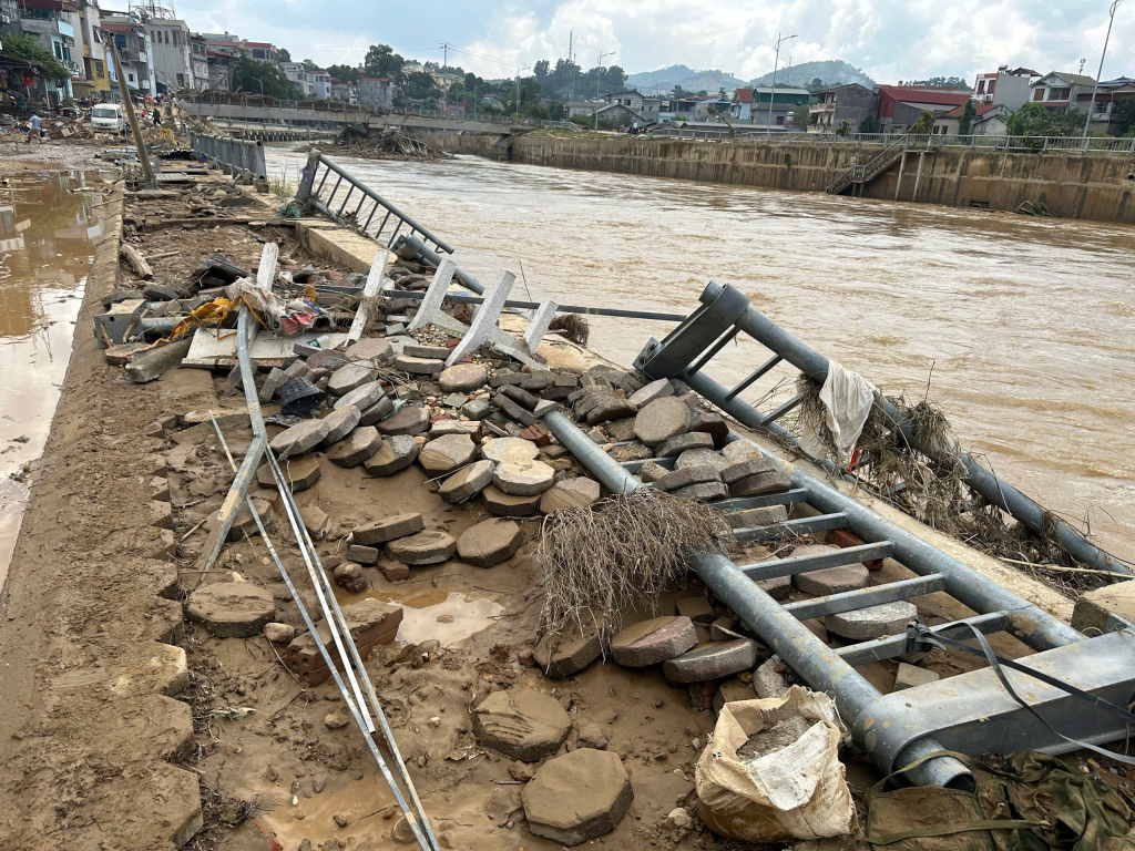 Các hạng mục như: vỉa hè, lan can, cột điện chiếu sáng bị hư hỏng nặng.
