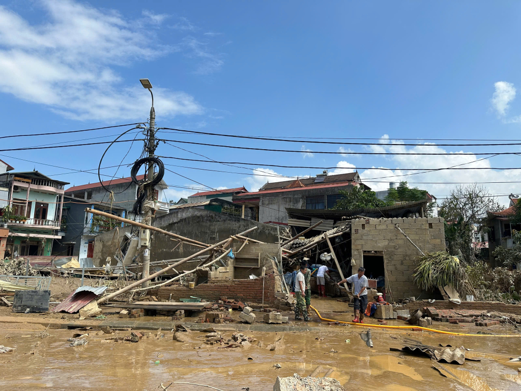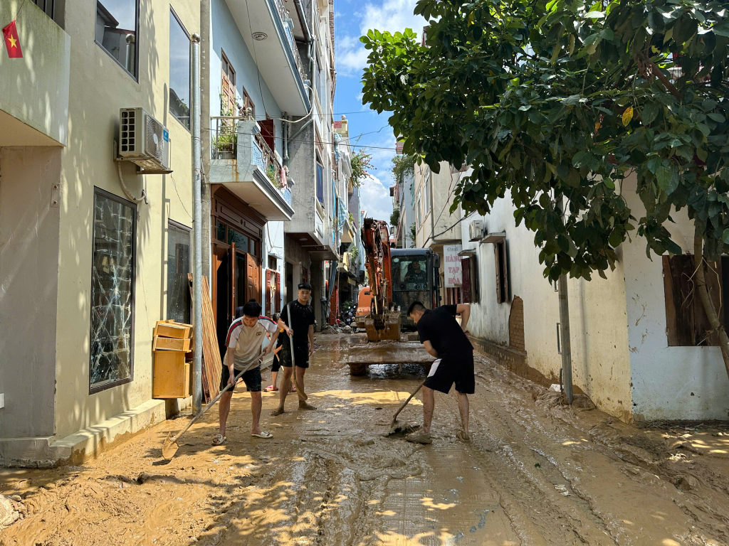 Người dân hỗ trợ nhau dọn dẹp nhà cửa.