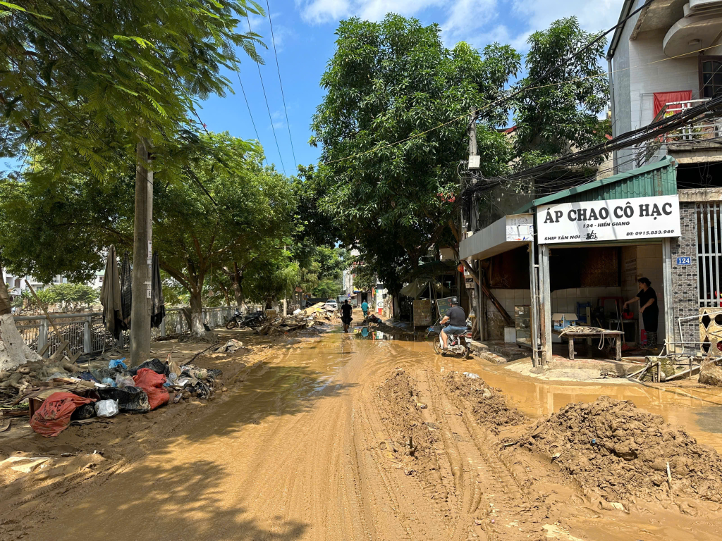 Lượng bùn vẫn dầy đặc khó khăn trong việc dọn dep, khắc phục hậu quả sau lũ.