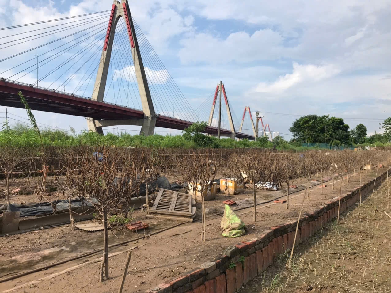 Vườn đào Phú Thượng có diện tích khoảng 30ha nằm cạnh bãi sông Hồng, là vườn trồng đào lâu năm và có tiếng cùng với vườn đào Nhật Tân. Những cây đào không chỉ là nguồn sinh kế mà còn là niềm tự hào của mỗi người dân trồng hoa. Tuy nhiên, chưa đầy 2 năm qua, những cơn bão như Yagi 2024, bão số 10 Bualoi và số 11 Matmo 2025 đã “vắt kiệt” niềm hy vọng của người dân làng đào Phú Thượng.