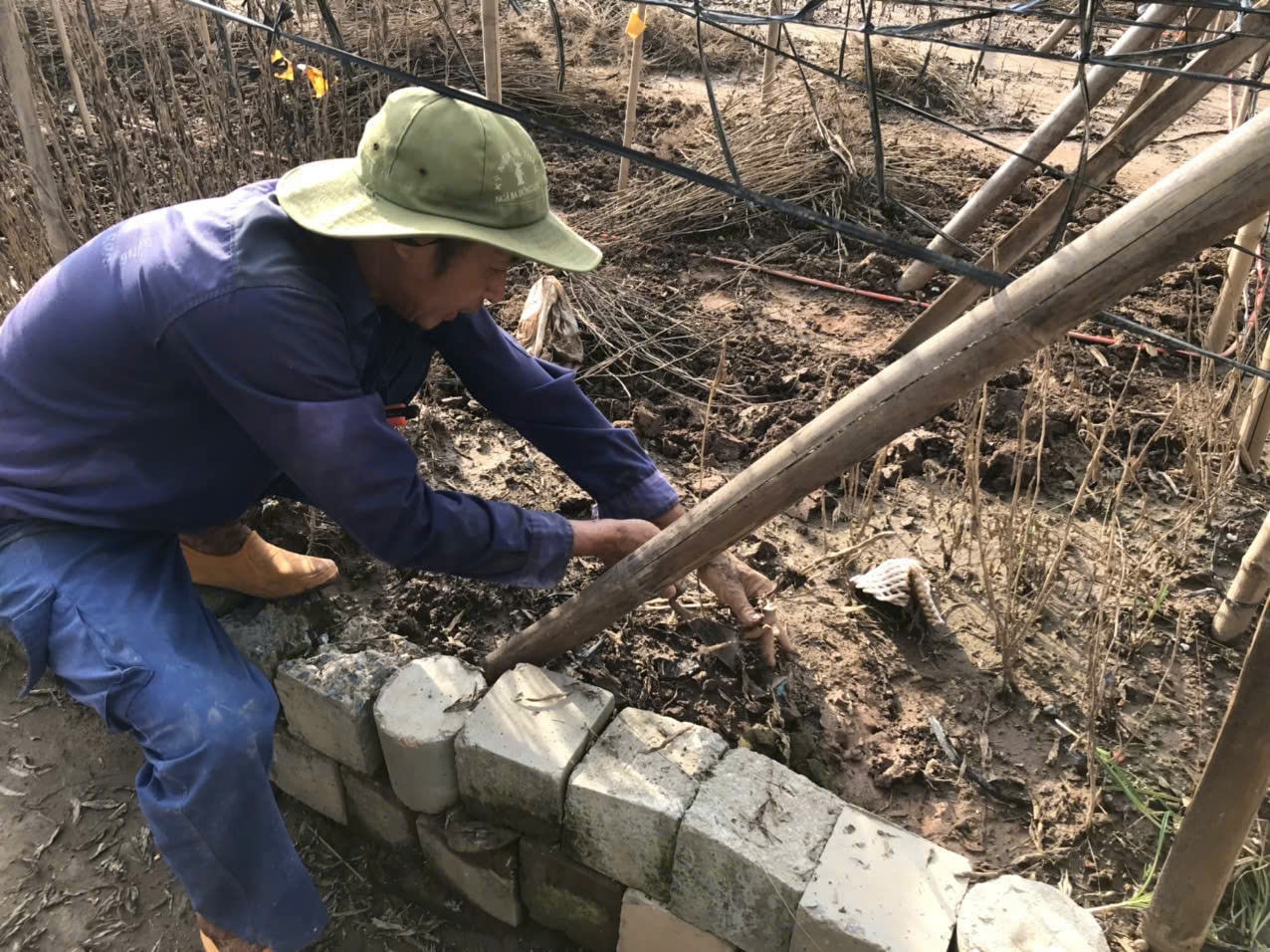 Những cây đào hỏng được chặt bỏ, chất thành đống mang đi đốt. Những cây đào còn sống được người dân cẩn thận tuốt lá, ngắt bỏ lá hỏng, chèn thêm gạch, ngói để ngăn ngập úng. Sau khi vườn được dọn sạch sẽ, đất đai được xới lại tơi xốp, người nông dân vội vã ươm hạt giống hoa mới để kịp phục vụ hoa dịp Tết Nguyên đán 2026.