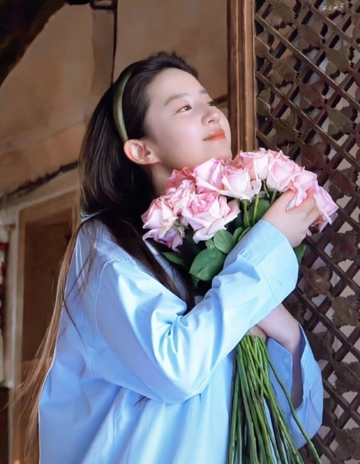 Còn nhớ khi quay phim Đi Đến Nơi Có Gió, Lưu Diệc Phi từng tạo nên cơn sốt với loạt ảnh ôm bó hoa hồng đứng bên khung cửa. Chỉ là một khoảnh khắc bình thường trên phim, chẳng hề đầu tư cầu kỳ nhưng Lưu Diệc Phi vẫn khiến nhiều cô gái muốn có bộ ảnh giống như vậy.