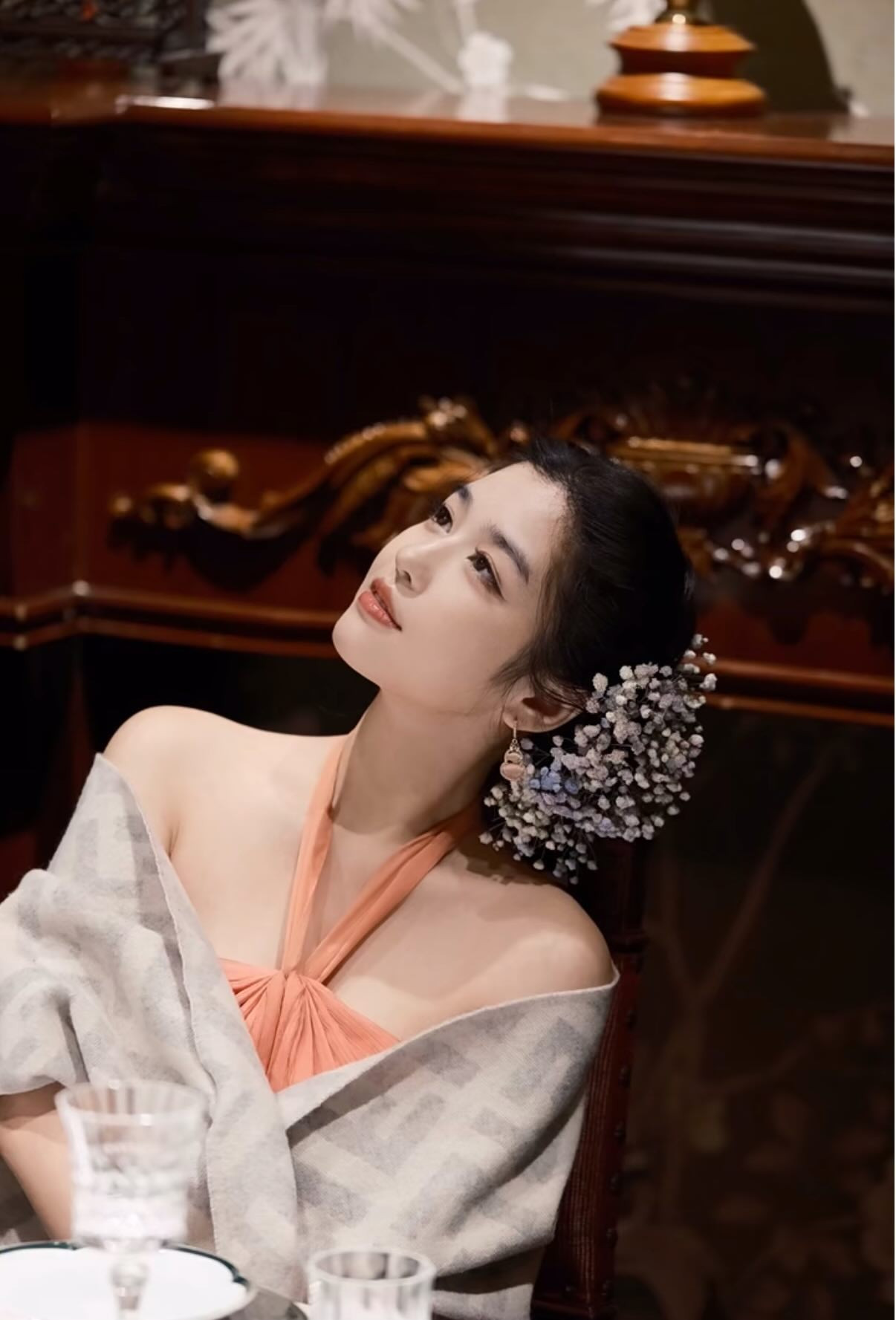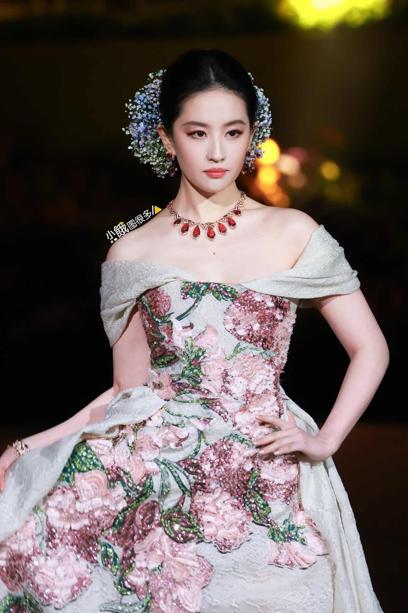 Trước Lưu Diệc Phi, không mấy ai cài hoa baby lên mái tóc khi đi sự kiện và chẳng ngờ những chùm hoa baby khi biến thành đồ trang sức cho tóc lại nổi bật và sang trọng đến vậy. Chẳng cần phải trâm cài hoặc những chiếc cặp tóc đắt giá, Lưu Diệc Phi vẫn tỏa sáng với chùm hoa baby nhiều màu thanh nhã.