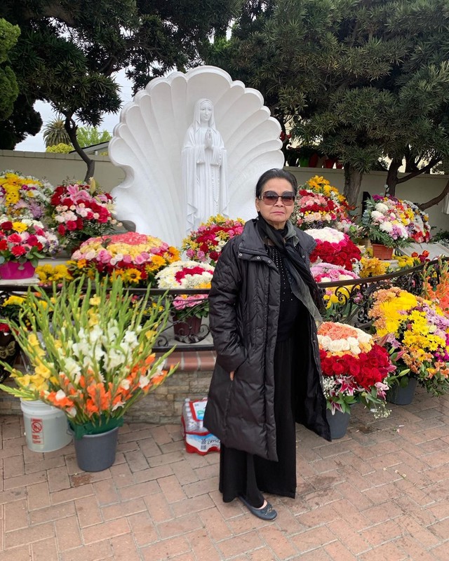 Danh ca Khánh Ly xuất hiện tươi tắn trong vườn nhà sau trận đột quỵ vào năm ngoái. Ảnh: FBNV.