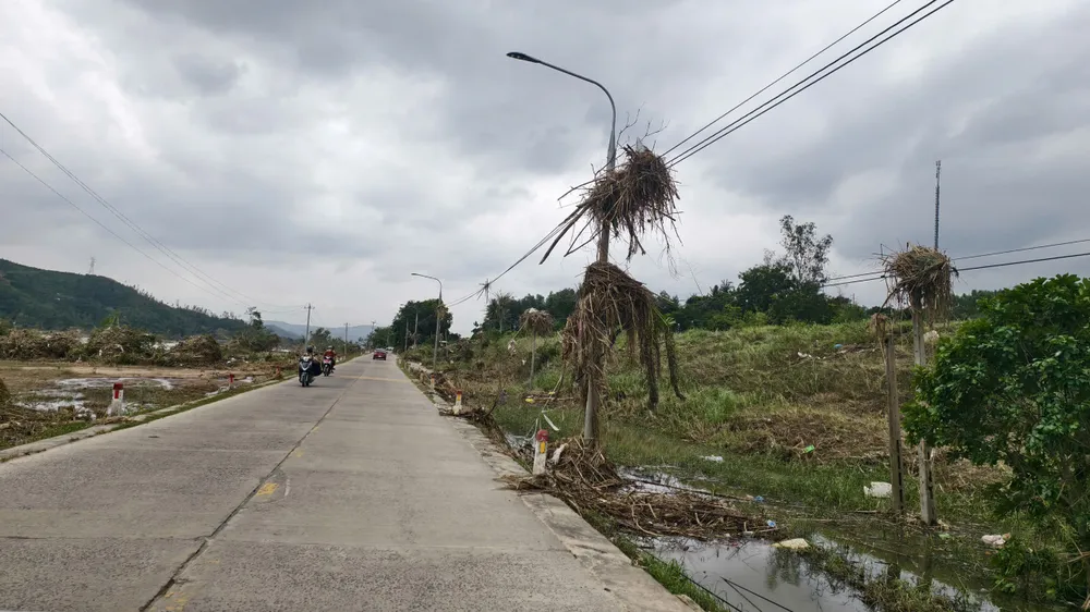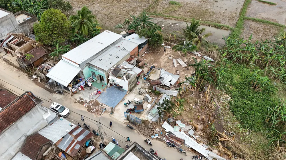 Căn nhà của ông Võ Văn Luận (44 tuổi, thôn Tân Vinh) bị sập hoàn toàn vào ngày 20-11, khi trận lũ dữ hoành hành ở Đồng Xuân. Trước đó, vợ con ông Luận đã được sơ tán. Riêng ông ở lại giữ 2 con bò. Thấy nước lên quá cao, ông mở dây thả bò đi rồi leo lên ngọn cây me tránh lũ.