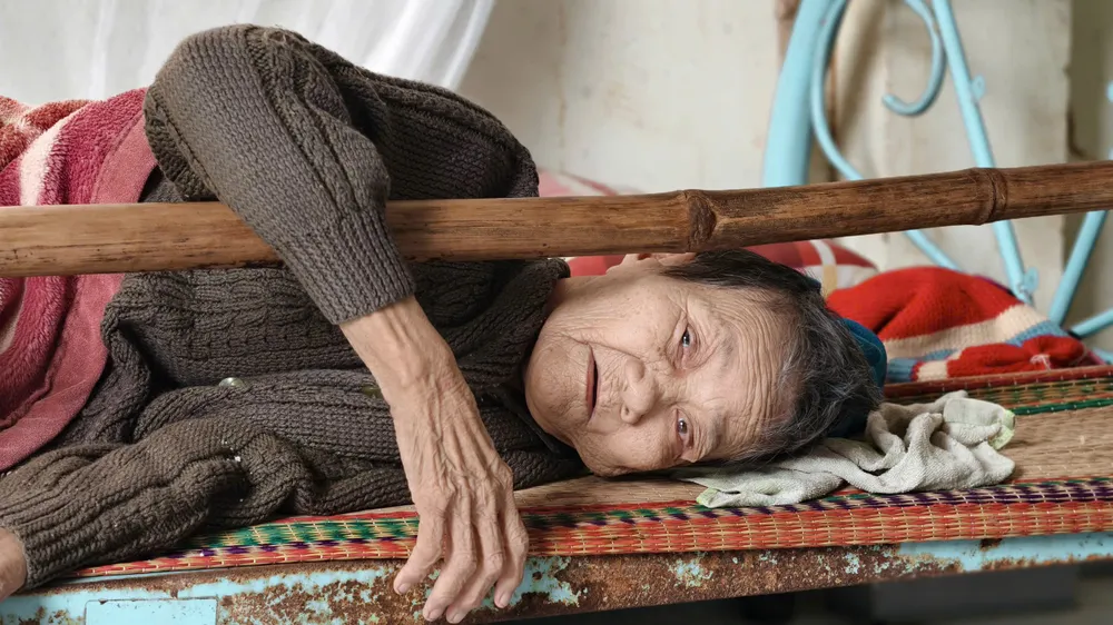 Bà Hương đã già, bị tai biến nằm liệt giường nhiều năm qua. Bà ở cùng người con trai 50 tuổi bị bệnh tâm thần. Sau lũ dữ, cuộc sống của bà vô vàn khó khăn.