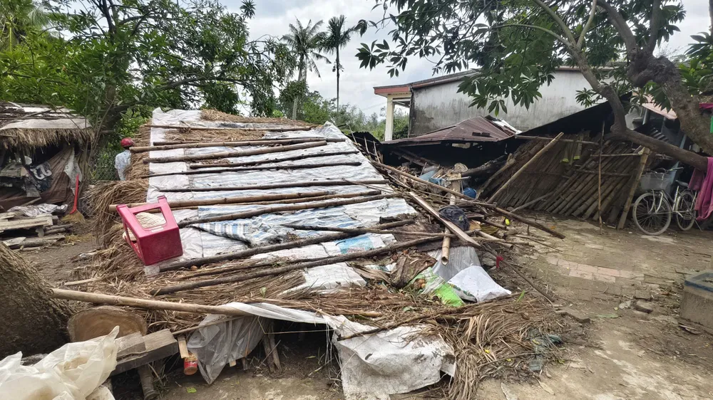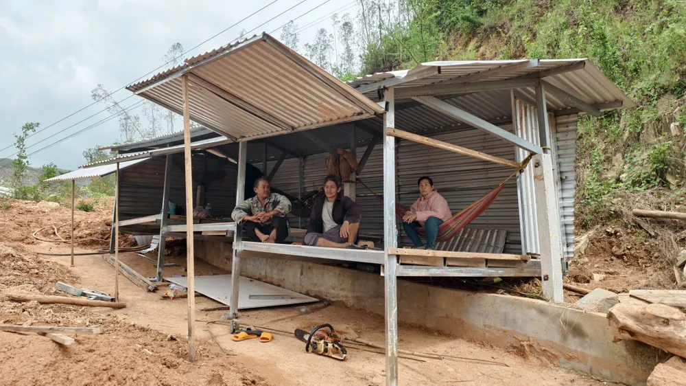 Gia đình ông Ca dựng tạm chòi tôn cạnh căn nhà vừa đổ sập để sống đỡ qua ngày.