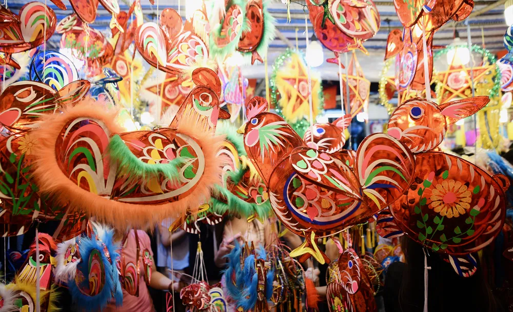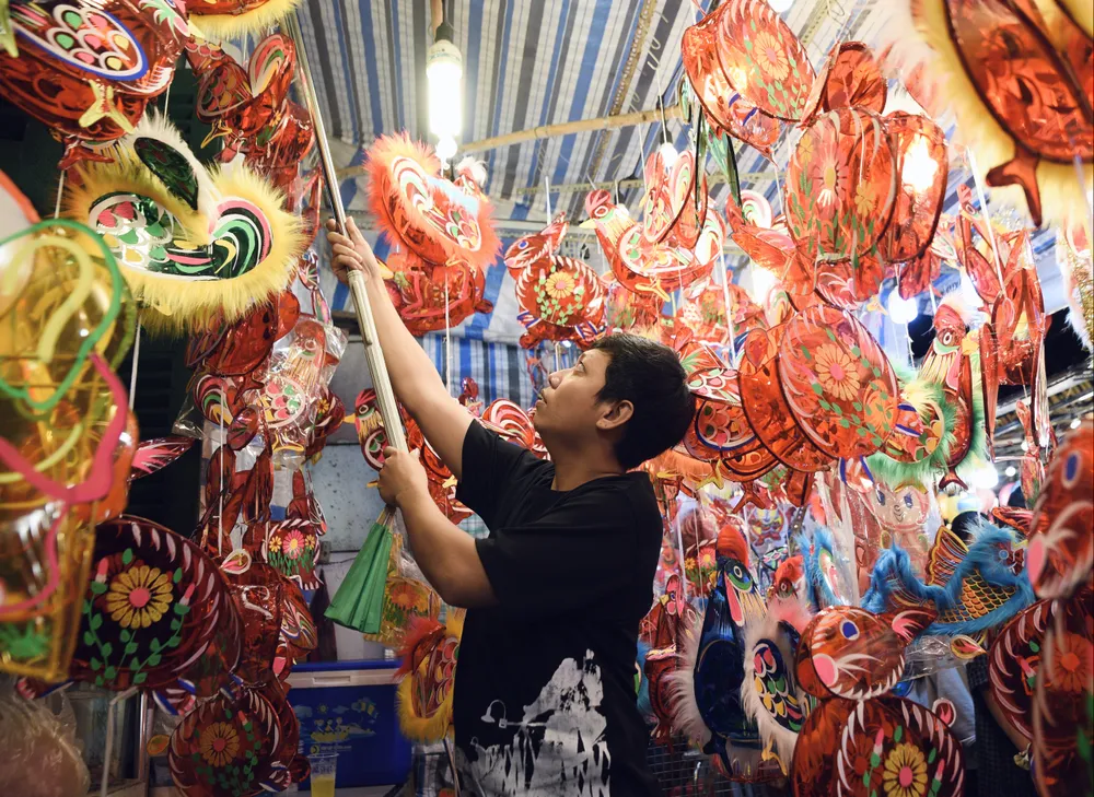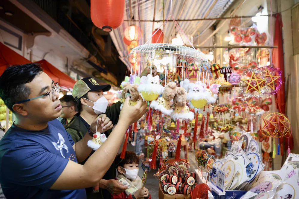 Cứ vào mỗi dịp Trung thu, phố lồng đèn đường Lương Nhữ Học (phường Chợ Lớn, TP.HCM) thu hút đông đảo người dân đến tham quan, mua sắm những chiếc lồng đèn rực rỡ sắc màu.