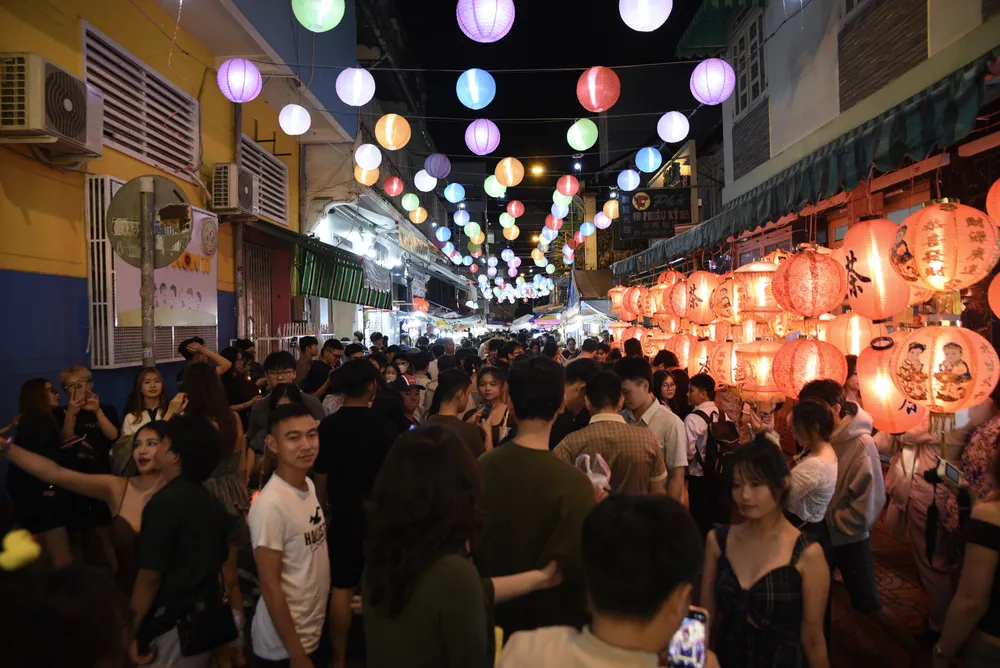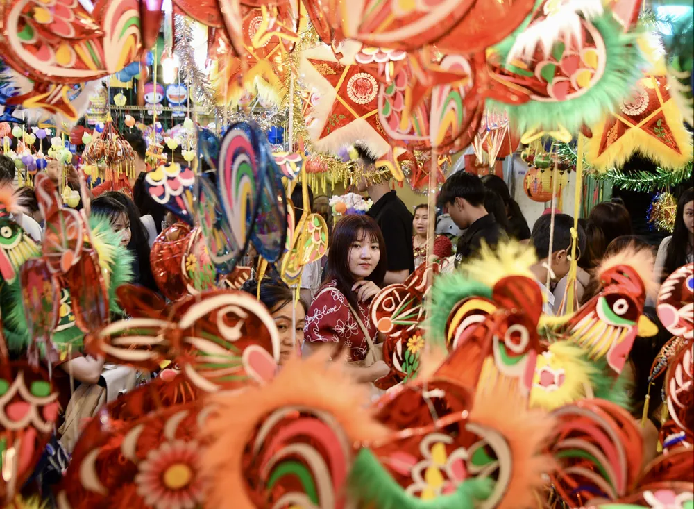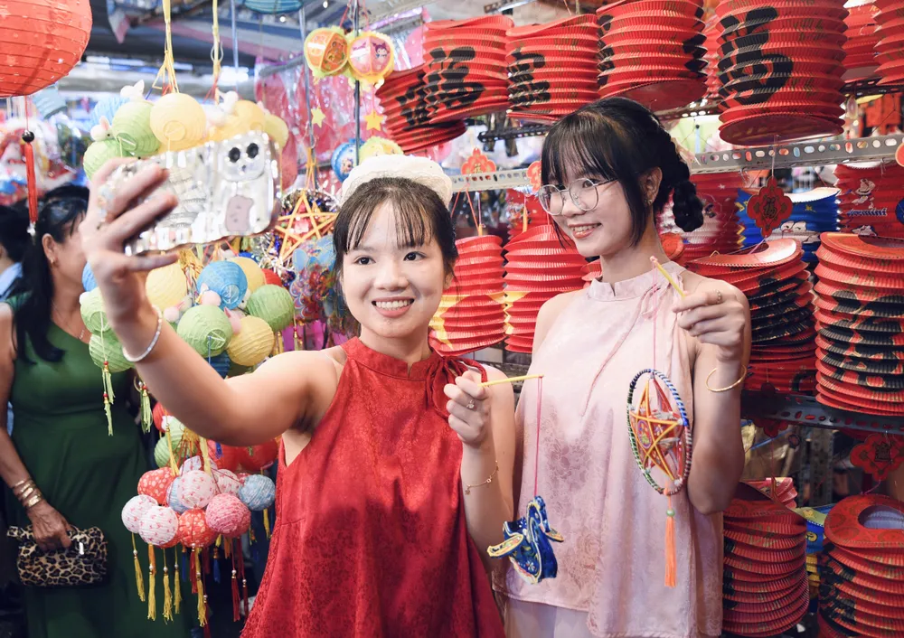 Phố lồng đèn trải dài trên các tuyến đường Lương Nhữ Học - Phú Định - Nguyễn Án - Nguyễn Trãi (phường Chợ Lớn, TP.HCM).