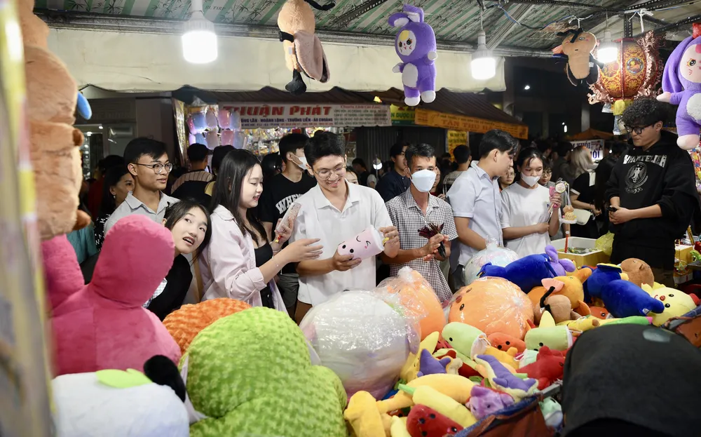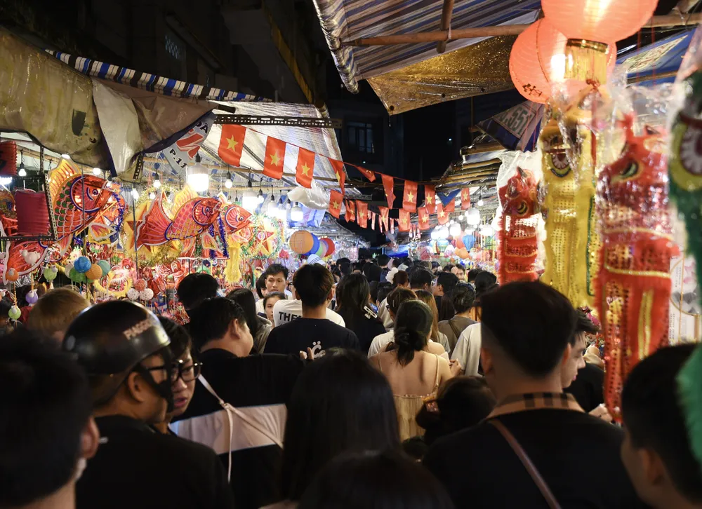 "Đêm trung thu nên dù mưa thì cũng bán đến khuya. Khách nhộn nhịp mua sắm, chụp hình check-in rất vui vẻ, sôi động"- một tiểu thương chia sẻ.