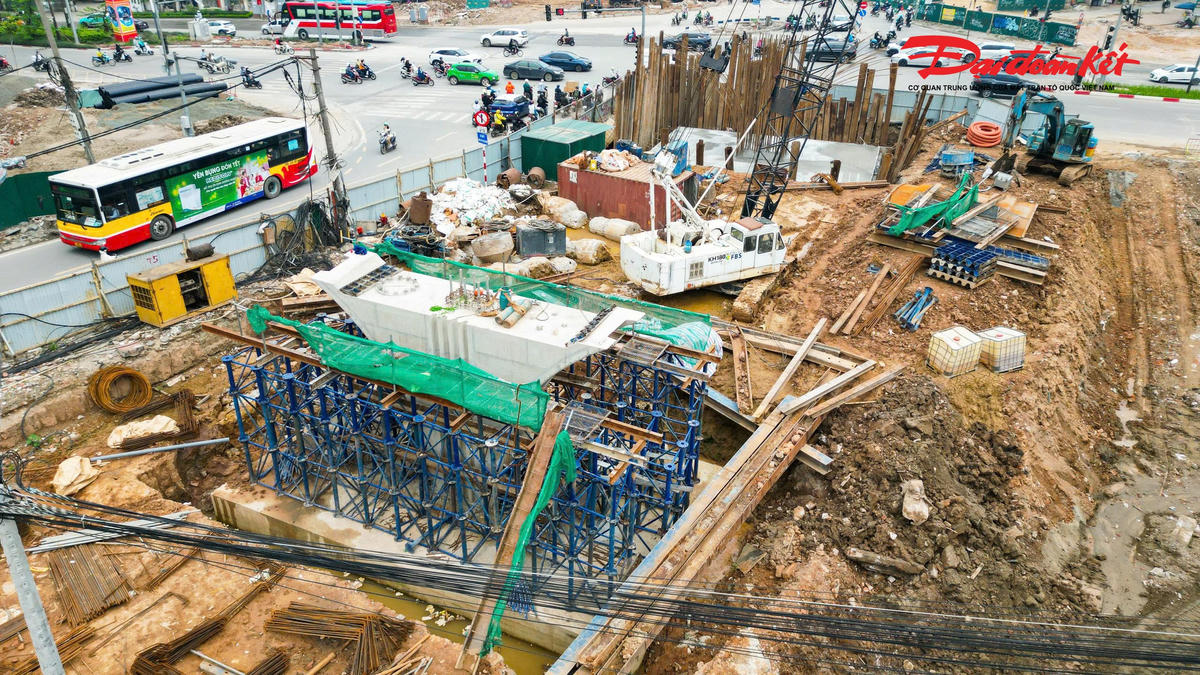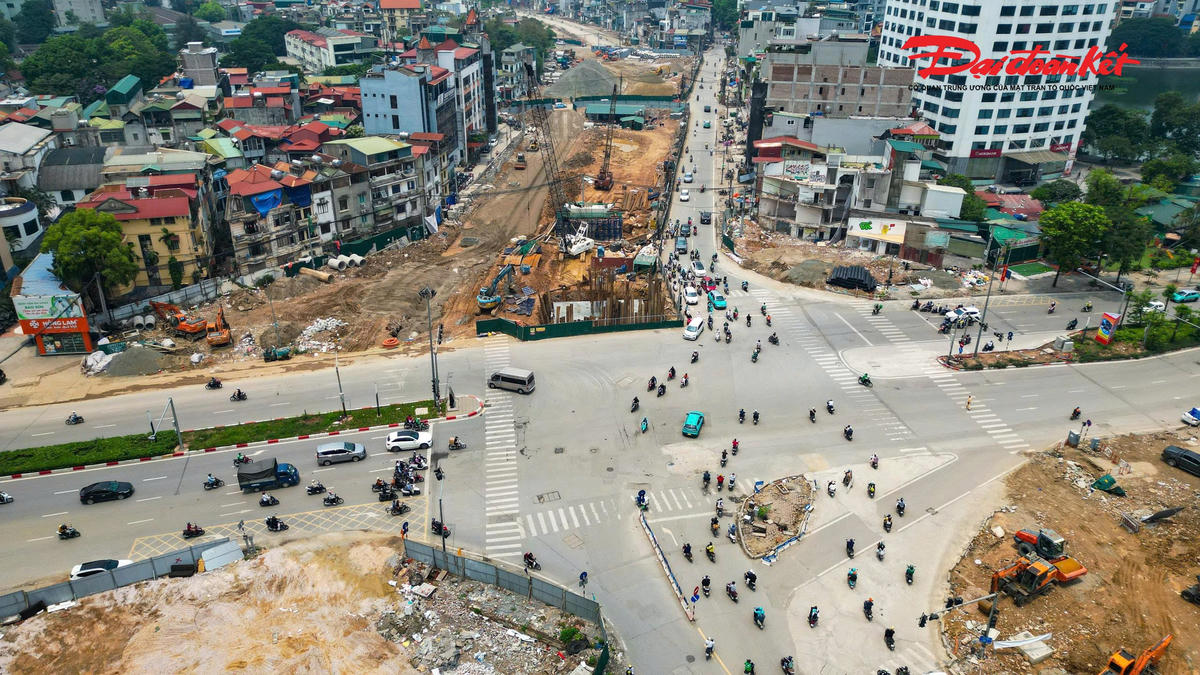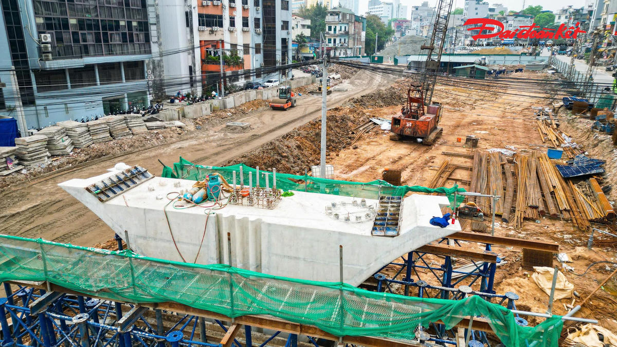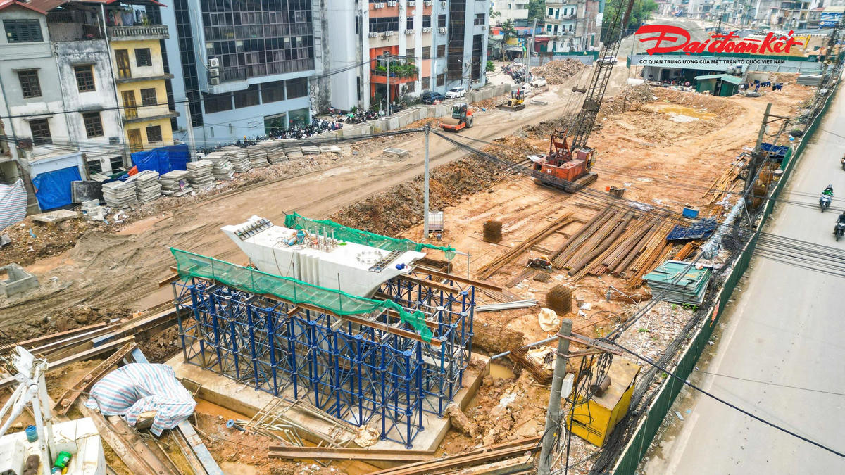 Trên tuyến, hai cầu vượt tại các nút giao Láng Hạ và Nguyễn Chí Thanh đang được đẩy nhanh tiến độ thi công. Đến nay, cầu vượt Láng Hạ đã hoàn thành 6/6 trụ, đạt khoảng 50% khối lượng.