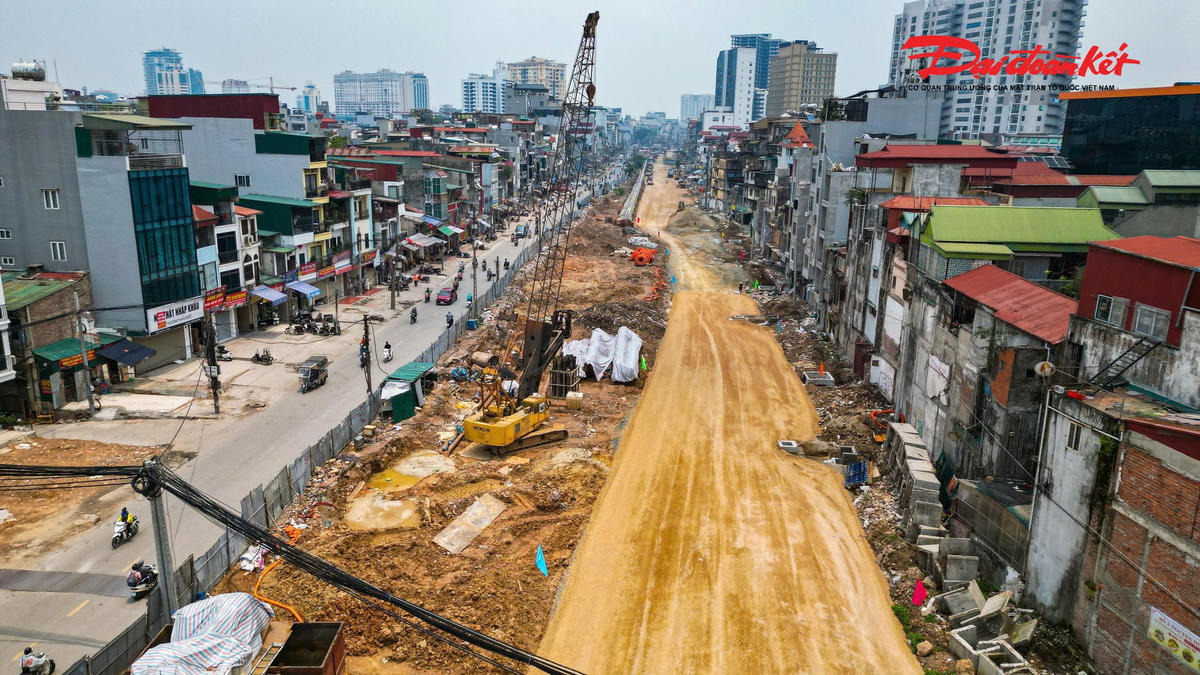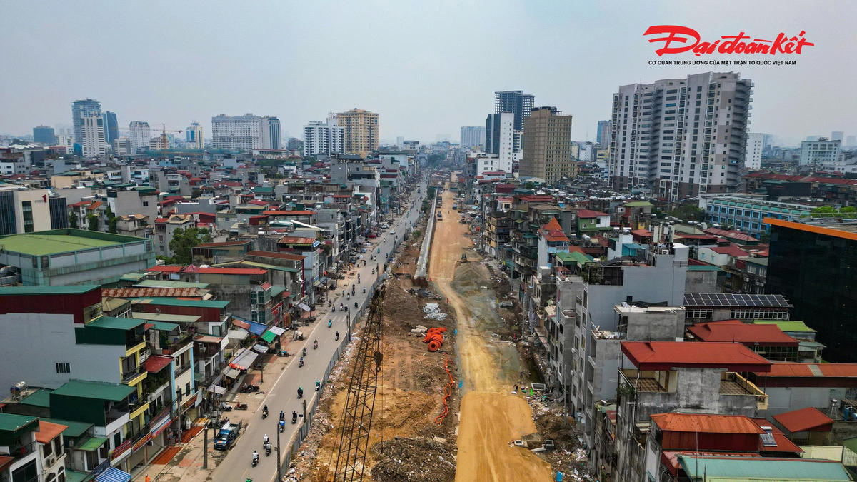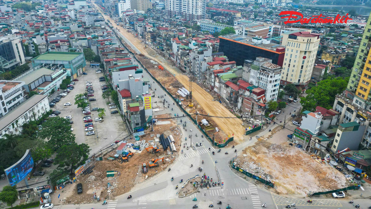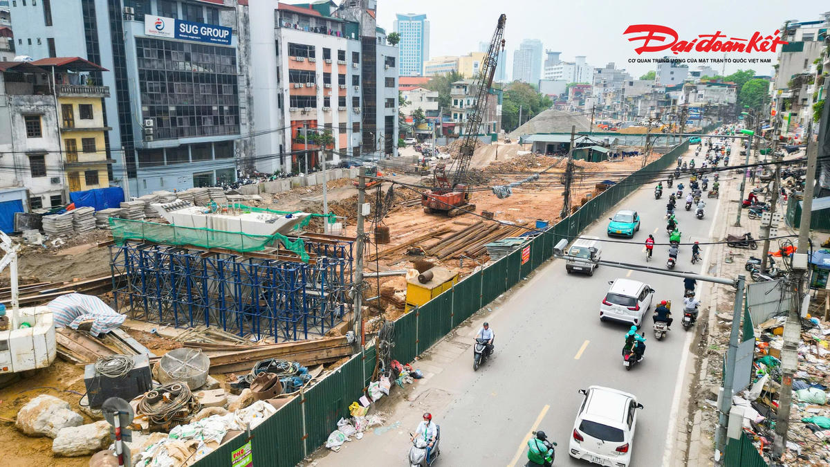 Trên tuyến, hai cầu vượt tại các nút giao Láng Hạ và Nguyễn Chí Thanh đang được đẩy nhanh tiến độ thi công. Đến nay, cầu vượt Láng Hạ đã hoàn thành 6/6 trụ, đạt khoảng 50% khối lượng.