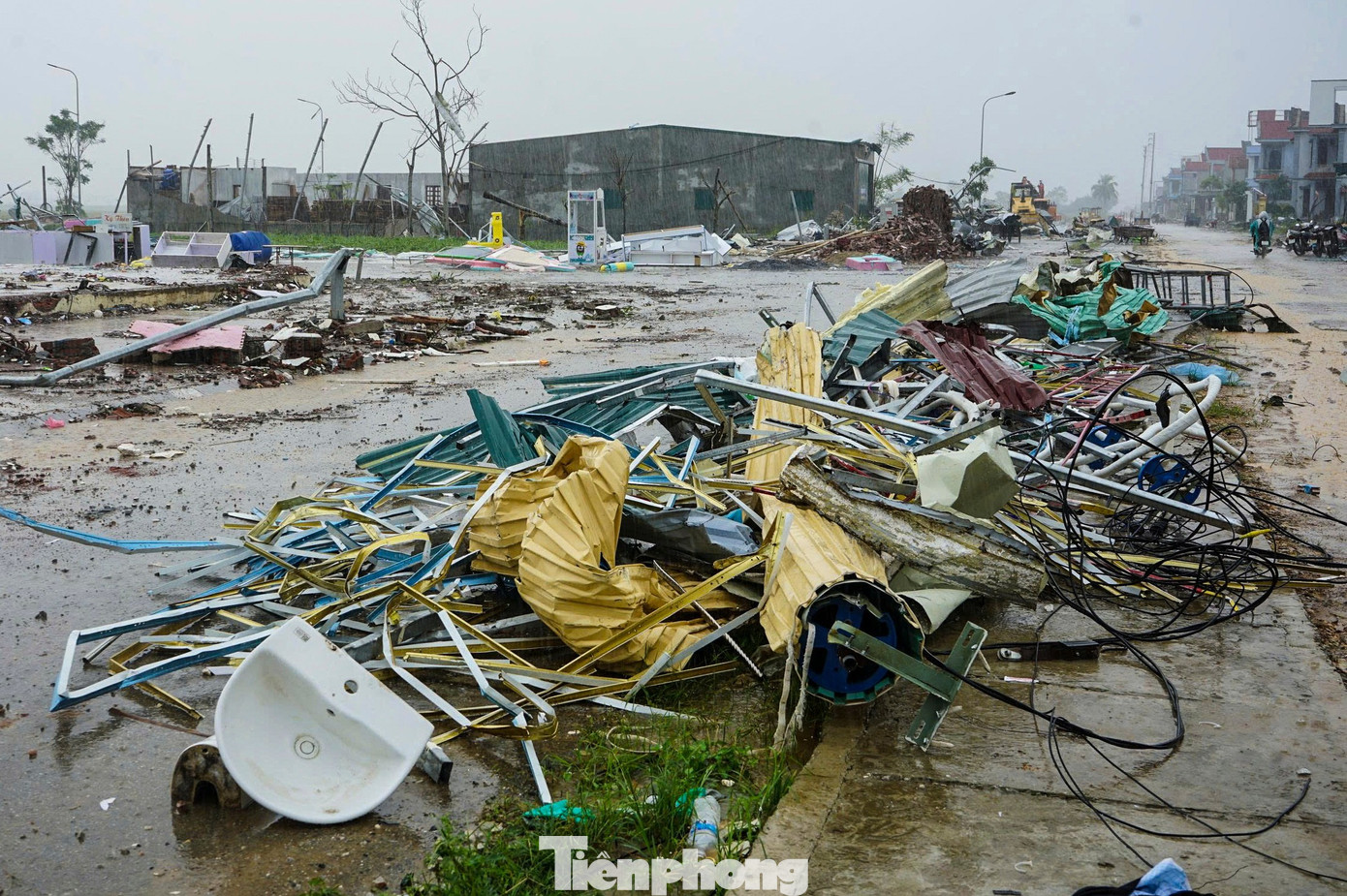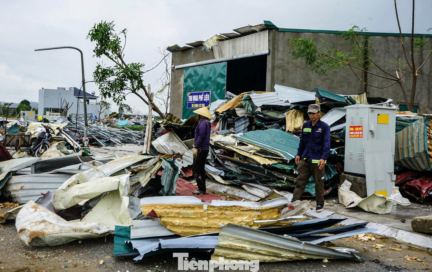 Cùng với việc khắc phục thiên tai, những người thu mua phế liệu cũng có mặt tại các khu vực bị lốc xoáy tàn phá để mua sắt, thép, tôn bị vò nát.
