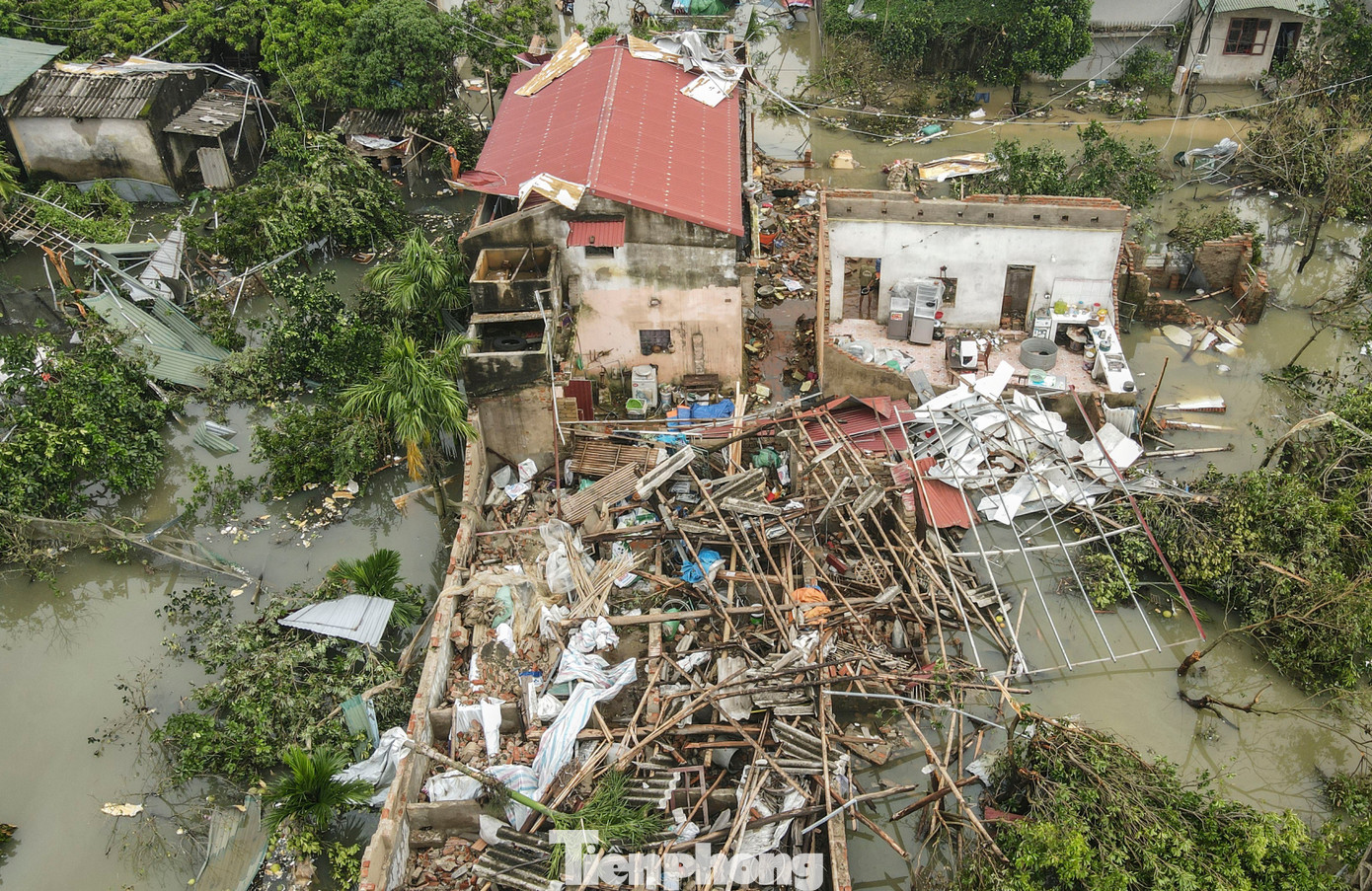 Hai ngày sau trận lốc xoáy xảy ra lúc rạng sáng 29/9, xã Hoằng Phú, Hoằng Giang (tỉnh Thanh Hóa) vẫn còn ngổn ngang.